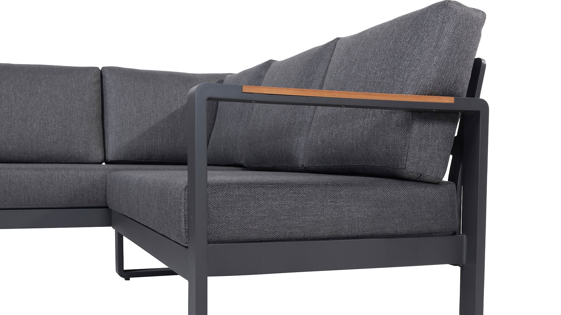 The Taste by 4 Seasons Amari lounge set is a modern platform lounge set with a sleek design. The set is available with either a corner table or a cushion corner; the advantage of the enclosed cushion corner is that the set has an extra seating area. And you can comfortably lounge with your legs on the couch from the corner! The color combination of teak wood and aluminum provides a fantastic appearance. The modern design, high-quality materials, and exceptionally good seating comfort are the hallmarks of the Taste 4 Seasons Outdoor Amari Lounge Set.