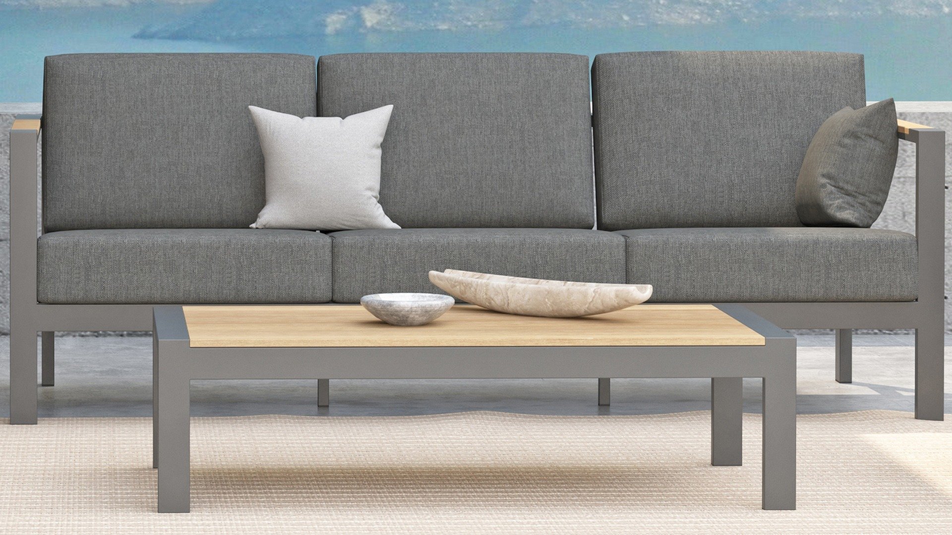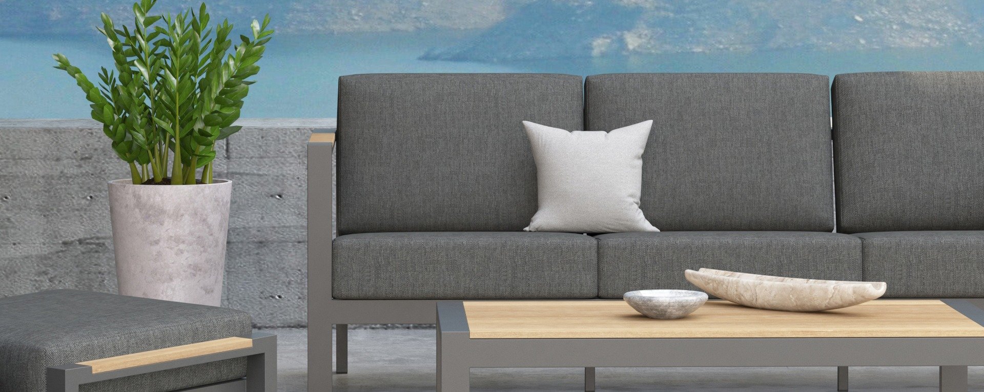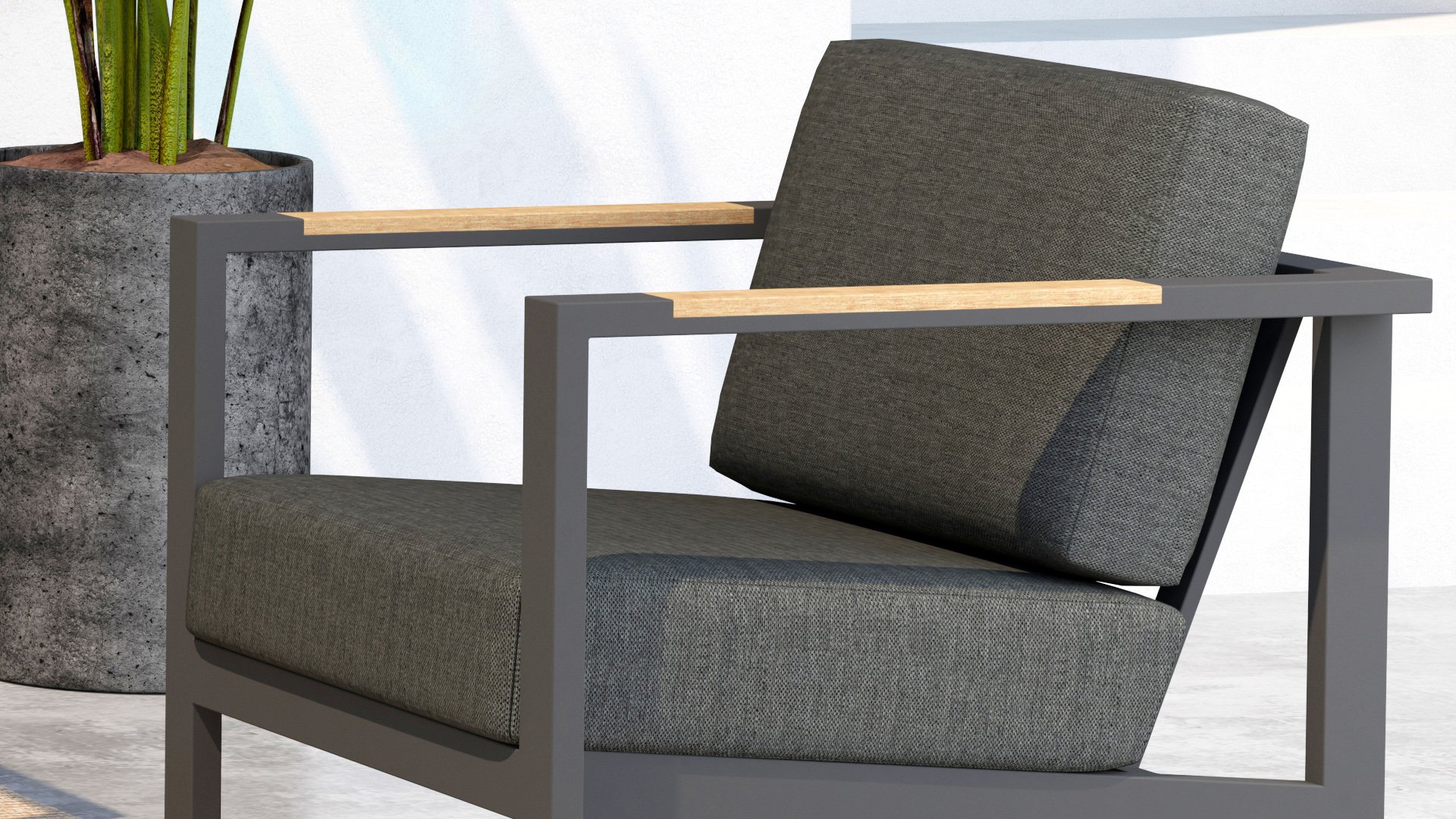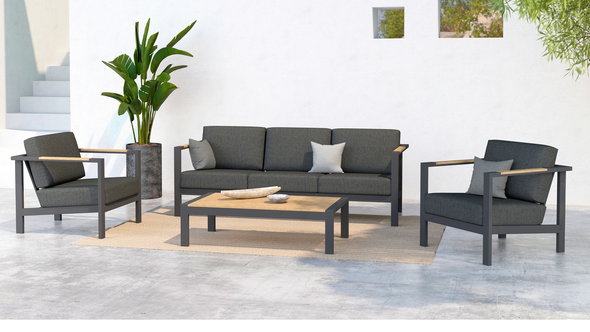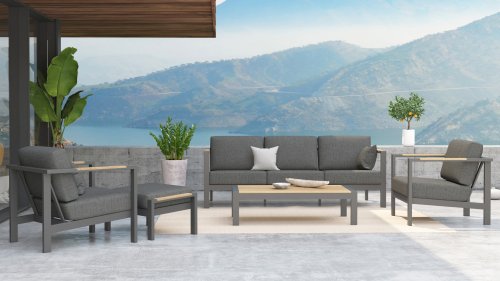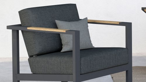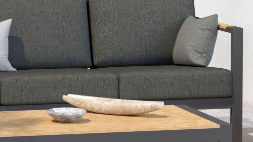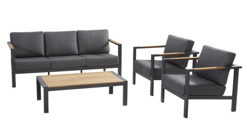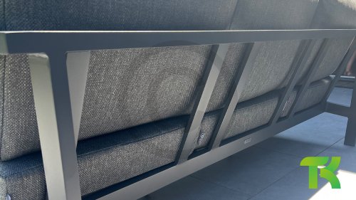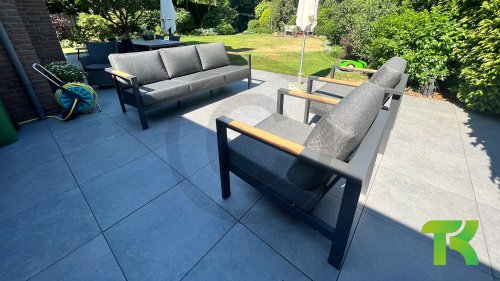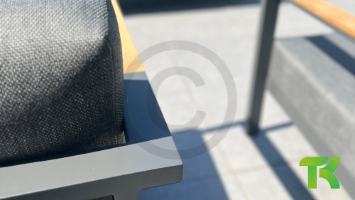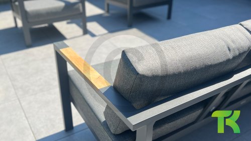 The Taste Ginger lounge set is a very comfortable and robustly designed lounge set with a modern design. A relaxed set to lounge in with a good book or the latest glossy magazine. The Taste Ginger is executed in peaceful neutral colors and therefore fits in almost any garden. The frame is made of high-quality anthracite powder-coated aluminum finished with weather-resistant teak armrests. The gray cushions are extra thick and inviting. The fabric is weather-resistant and has a rugged appearance. Under the seat cushions, there is a Textilene lining, which further enhances the seating comfort.