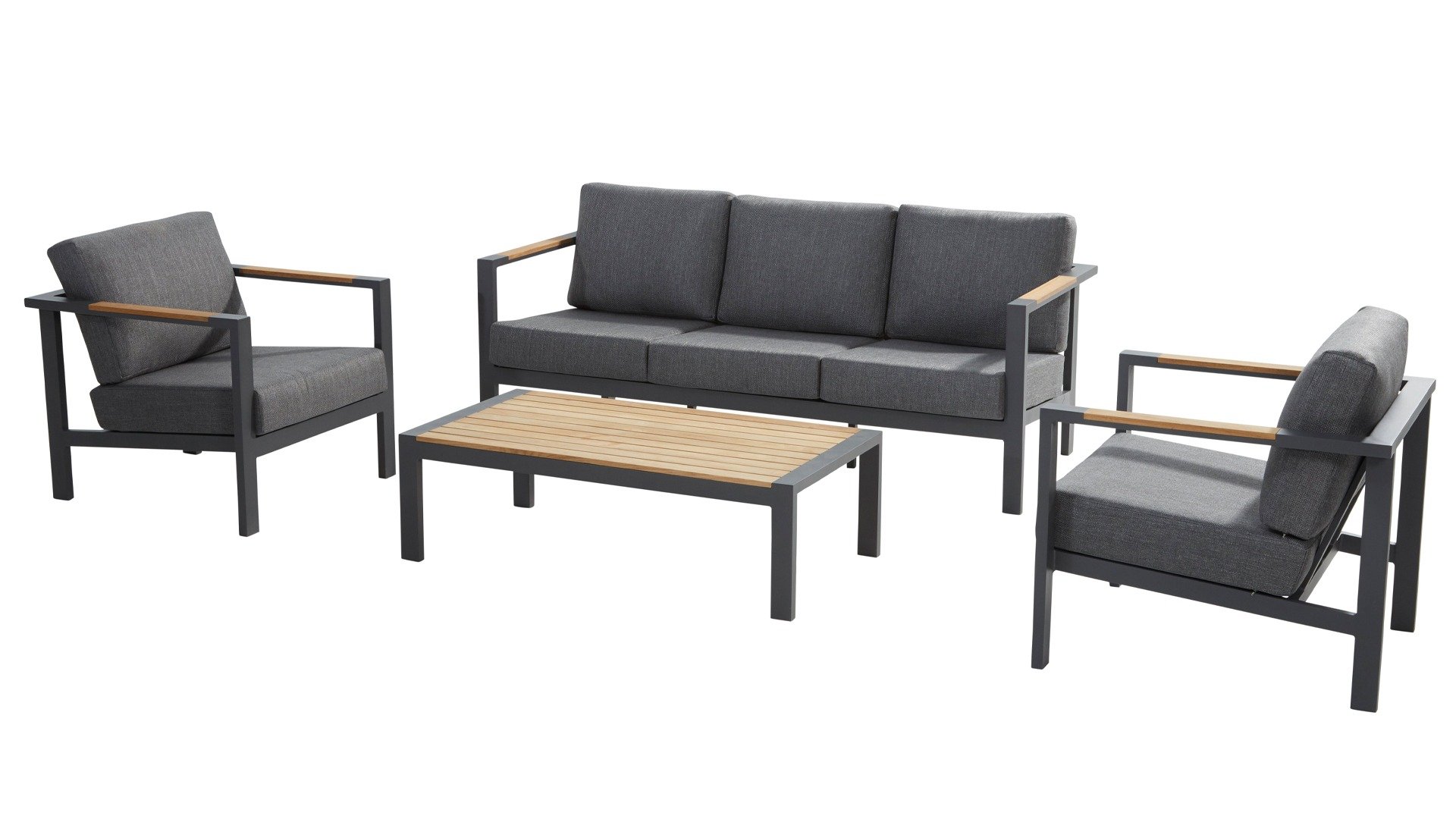 The Taste Ginger is executed in calm neutral colors and therefore suits almost any garden. The frame is made of high-quality anthracite powder-coated aluminum finished with weather-resistant teak wooden armrests. The gray cushions are extra thick and inviting. The fabric is weather-resistant and has a sturdy appearance. The luxury cushions have a removable cover made of Olefin fabric, which can be washed and dried at 30 degrees. Olefin is highly UV resistant and can also withstand rain, cold, and high temperatures.