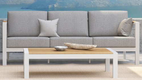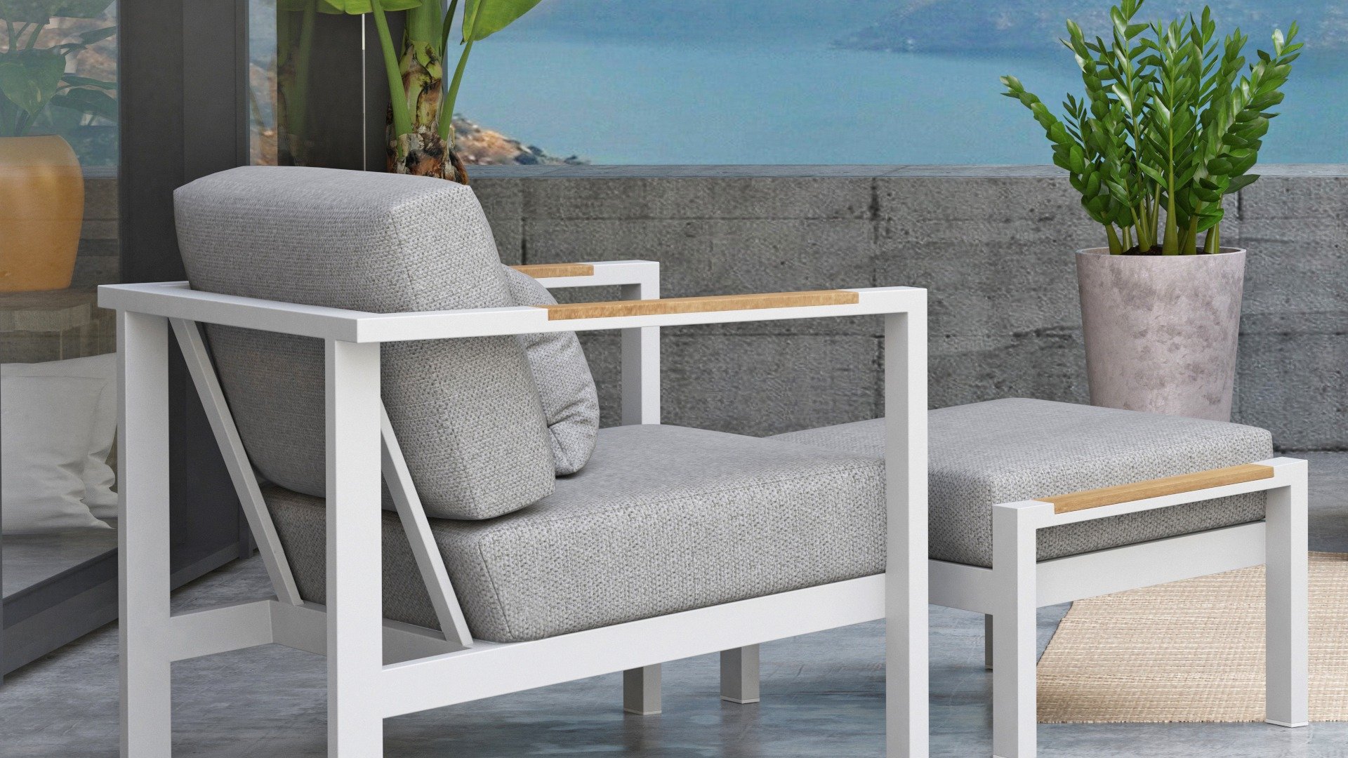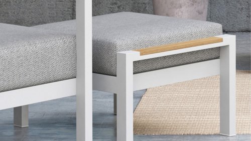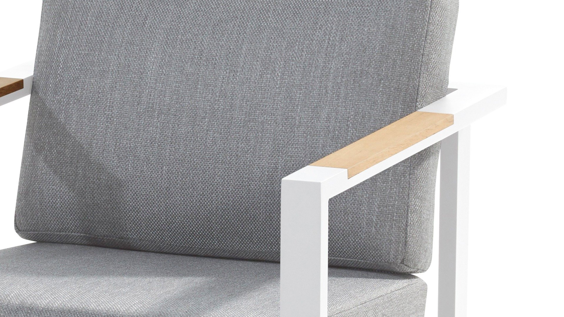 The Taste Ginger lounge set is a very comfortable and robustly designed lounge set with a modern design. A relaxing set to lounge in with a good book or the latest glossy magazine. The Taste Ginger is executed in peaceful neutral colors and therefore fits in almost any garden. The frame is made of high-quality anthracite powder-coated aluminum finished with weather-resistant teak armrests. The gray cushions are extra thick and inviting. The fabric is weather-resistant and has a sturdy appearance. There is a Textileen mesh under the seat cushions, which further increases the seating comfort.