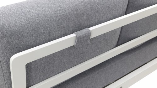 The frame of the Taste by 4 Seasons Outdoor Matisse is made of aluminum powder-coated in the color Anthracite or in the color White, combined with comfortable Olefin cushions in Light Grey and (side) tables with teak details, creating a whole that is worth seeing and beautiful from all angles! The cushions have an Olefin cover that can be unzipped and washed at 30 degrees. This fabric is very weather-resistant and durable.