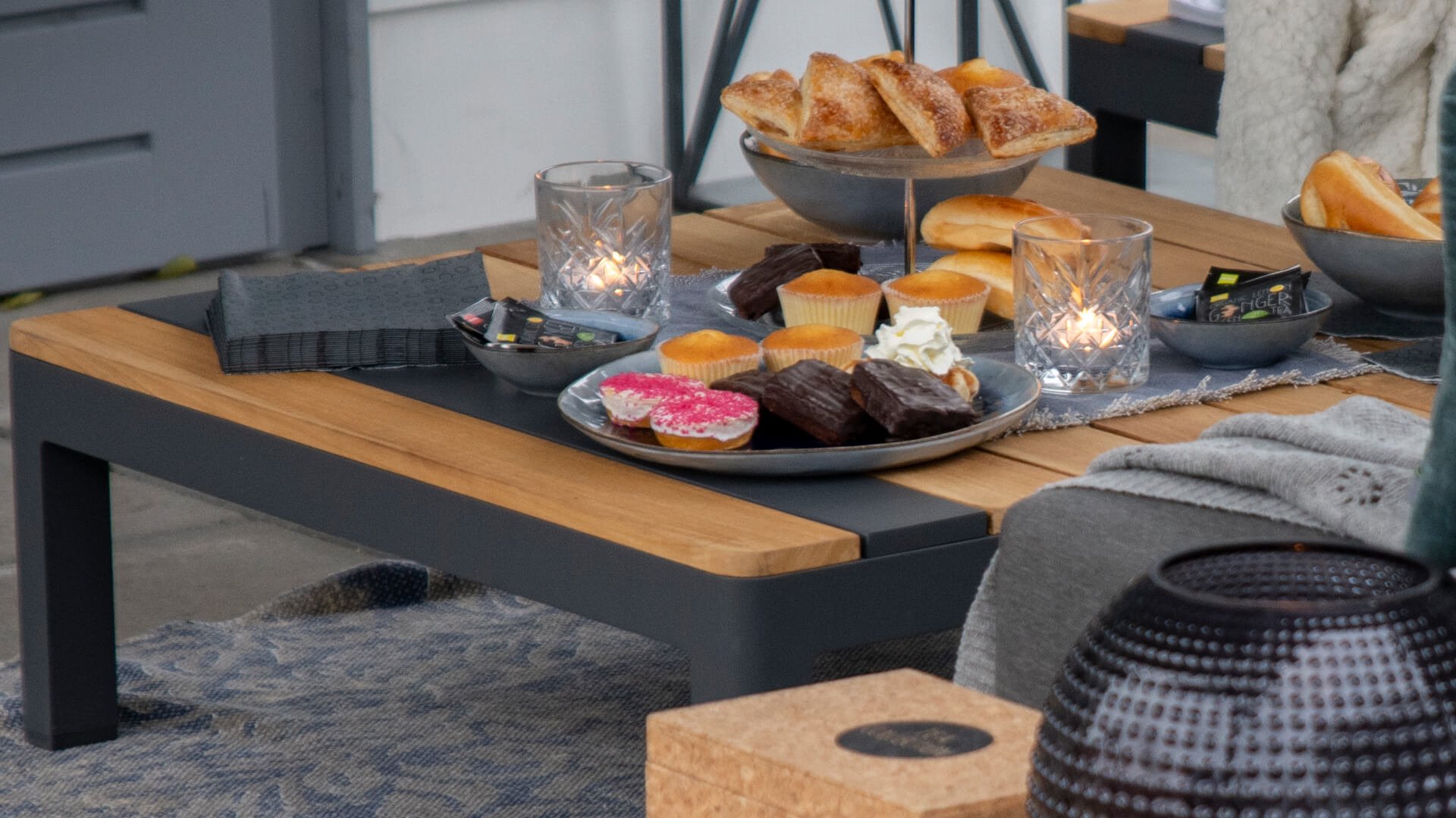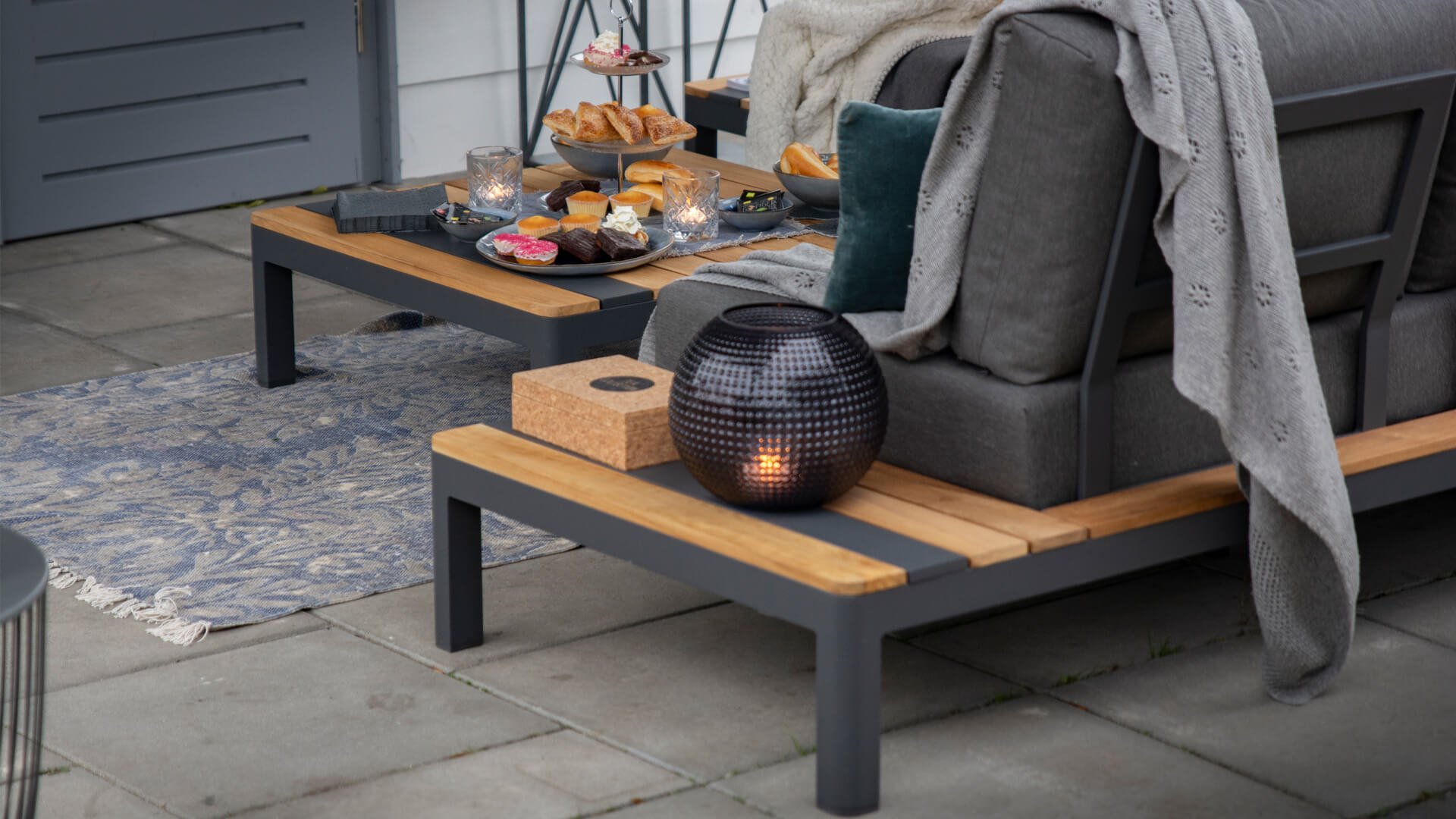 De sterke stof is bestand tegen een regenbui, uitritsbaar en wasbaar. Handig, maar let wel: de kussens zijn waterafstotend. Laat je ze lang in de regen liggen, dan kunnen ze alsnog nat worden aan de binnenkant.