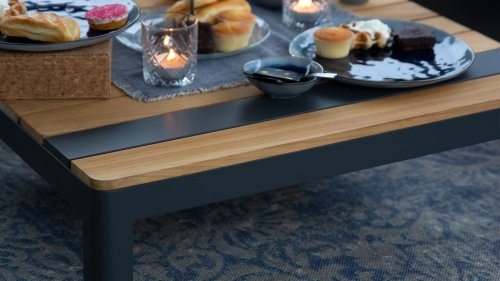 The Taste by 4 Seasons Meridien lounge set is a modern platform lounge set with a sleek design. The semi-all weather cushions that come with the lounge set are included as standard and have a high level of comfort. The set is available with either a corner table or a cushion corner; the advantage of the closing cushion corner is that the set has an extra seating space. And you can comfortably "lounge" from the corner with your legs on the couch! The color combination of teak wood and aluminum gives it a fantastic appearance!