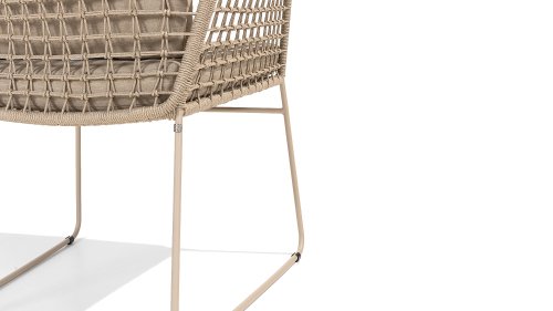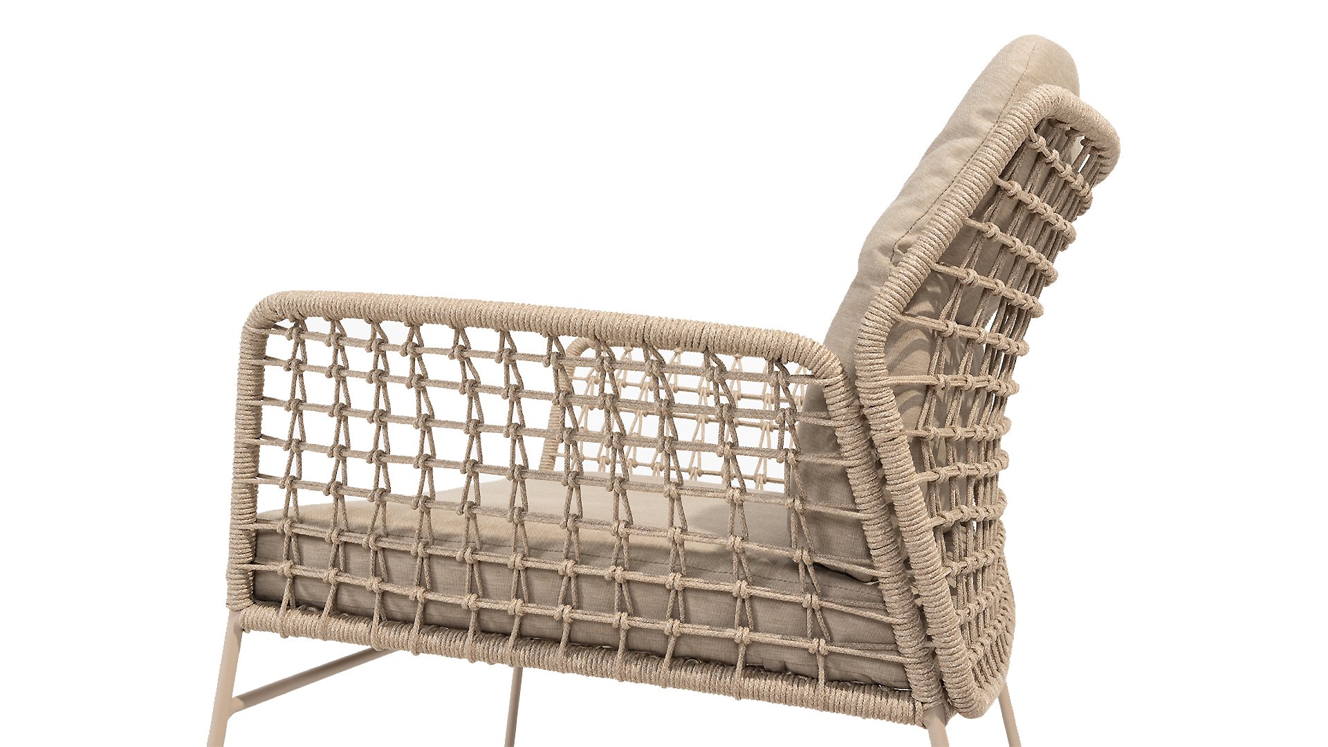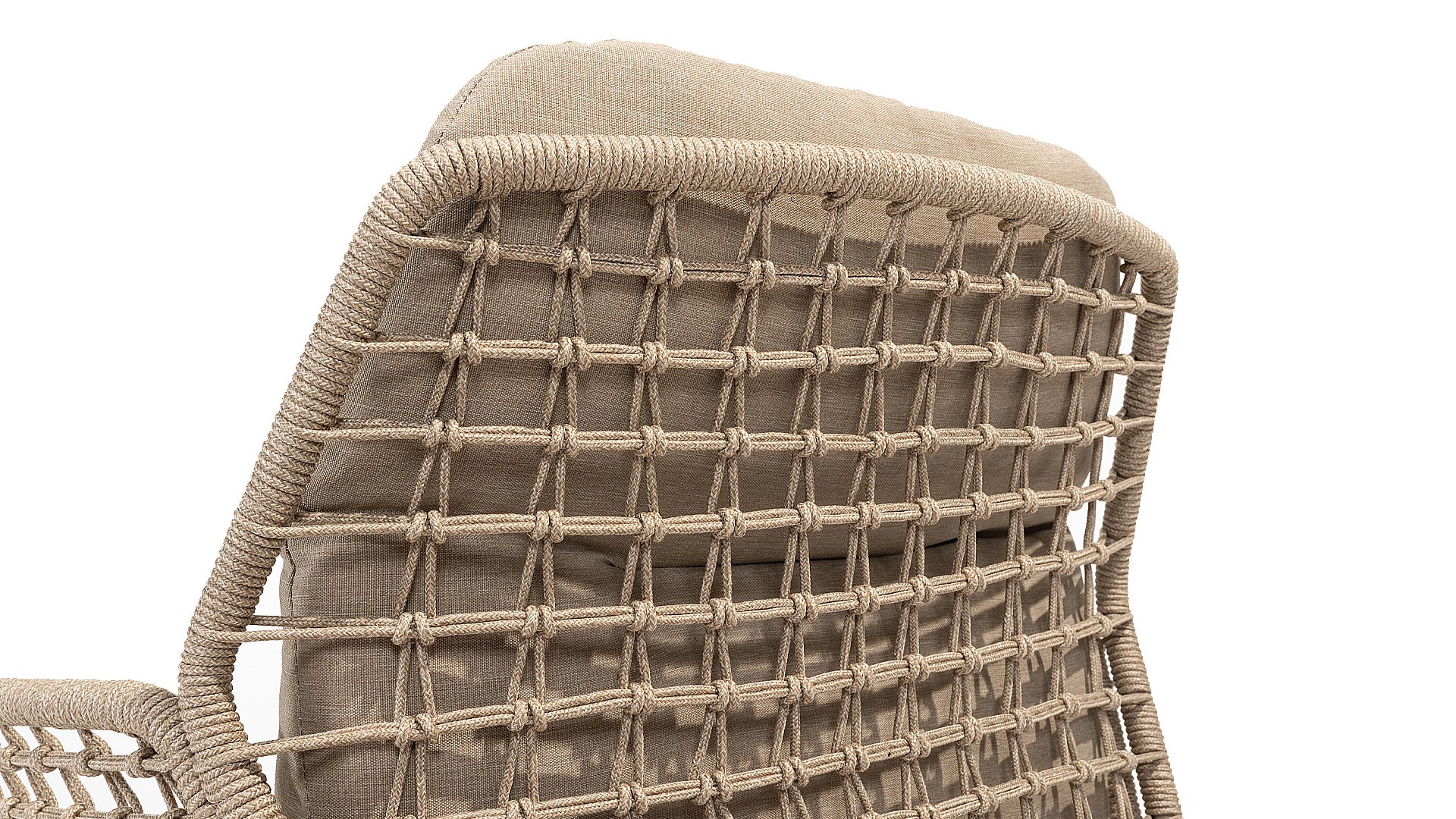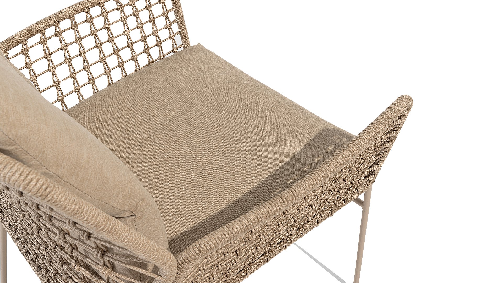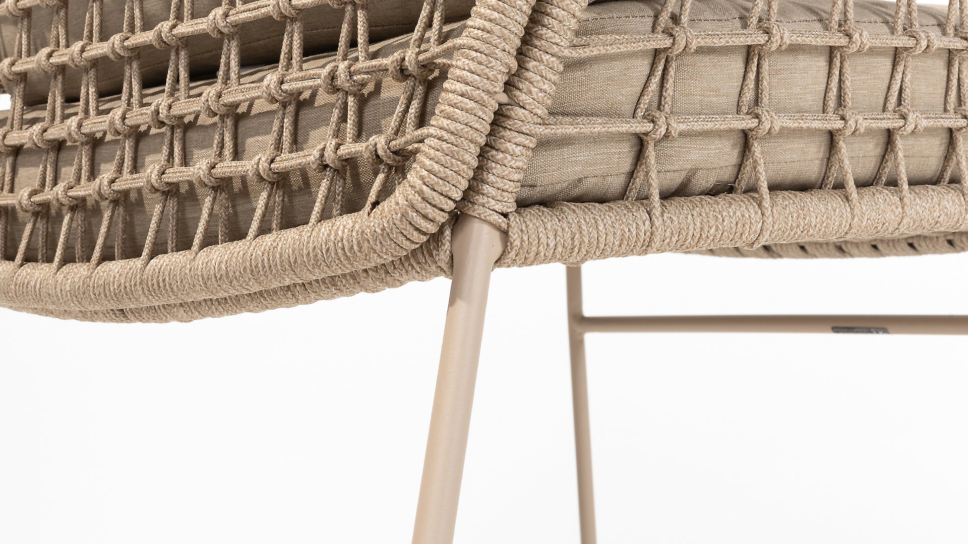 The Albano dining chair from Taste 4SO is a true asset to your outdoor space. The chair is made with high-quality, sand-colored rope and has a sturdy frame of stainless steel in the color latte. Due to the materials used, it is resistant to changing weather conditions. The included cushions provide extra comfort, making long dining sessions very enjoyable with the Albano dining chair.