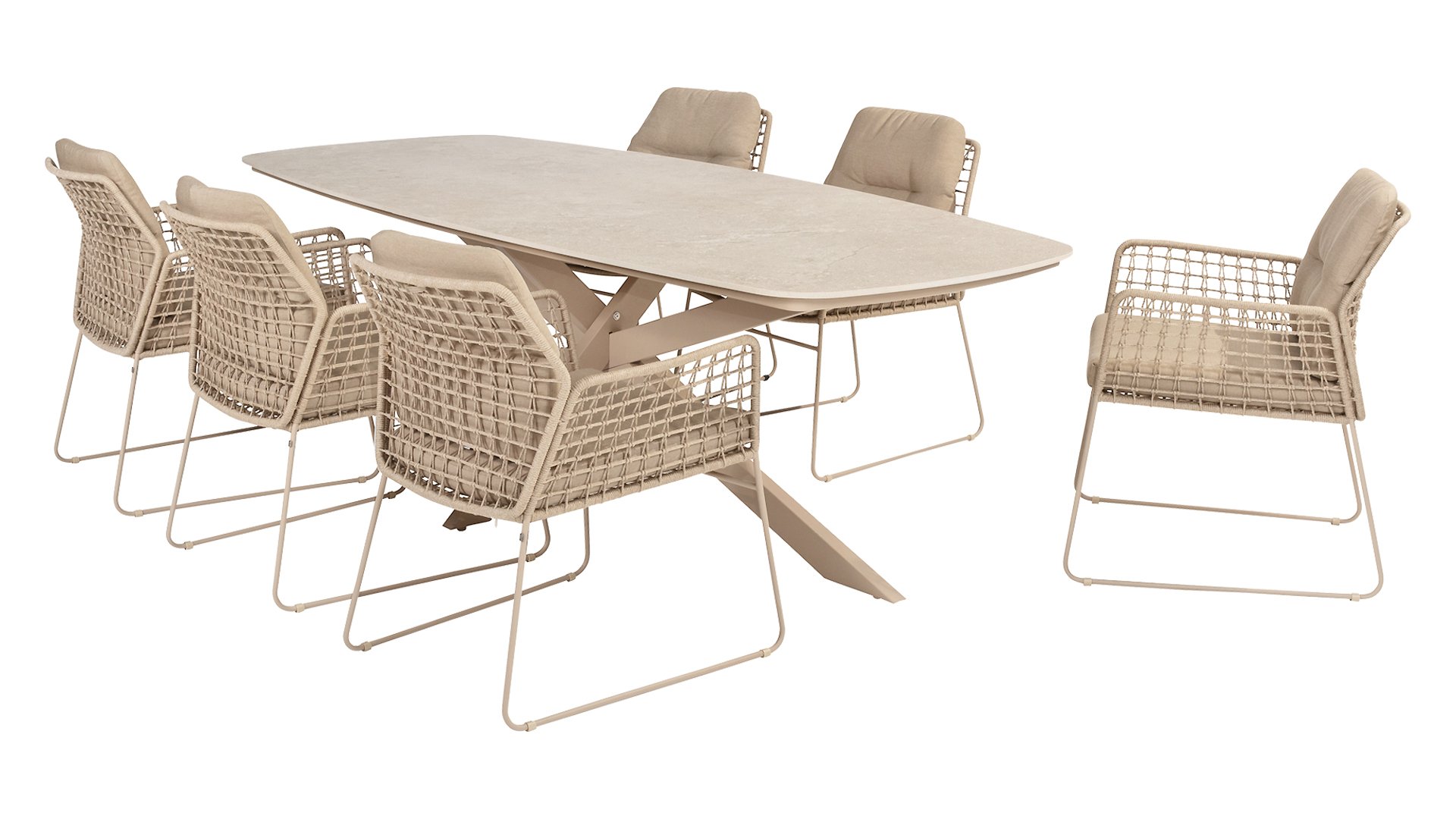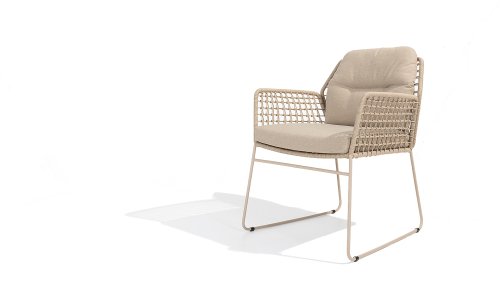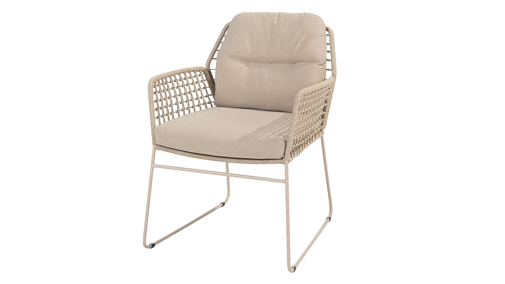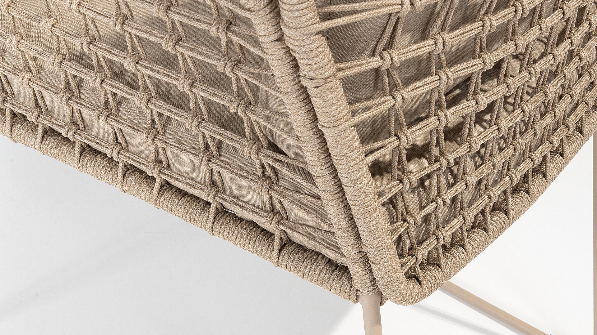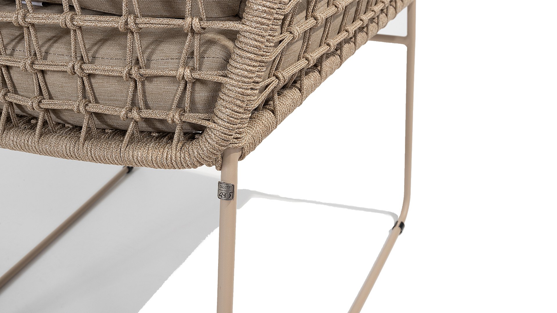 The Albano dining chair from Taste 4SO is a true asset to your outdoor space. The chair is made with high-quality, sand-colored rope and has a sturdy frame of stainless steel in the color latte. Due to the materials used, it is resistant to changing weather conditions. The included cushions provide extra comfort, making long dining sessions very enjoyable with the Albano dining chair.