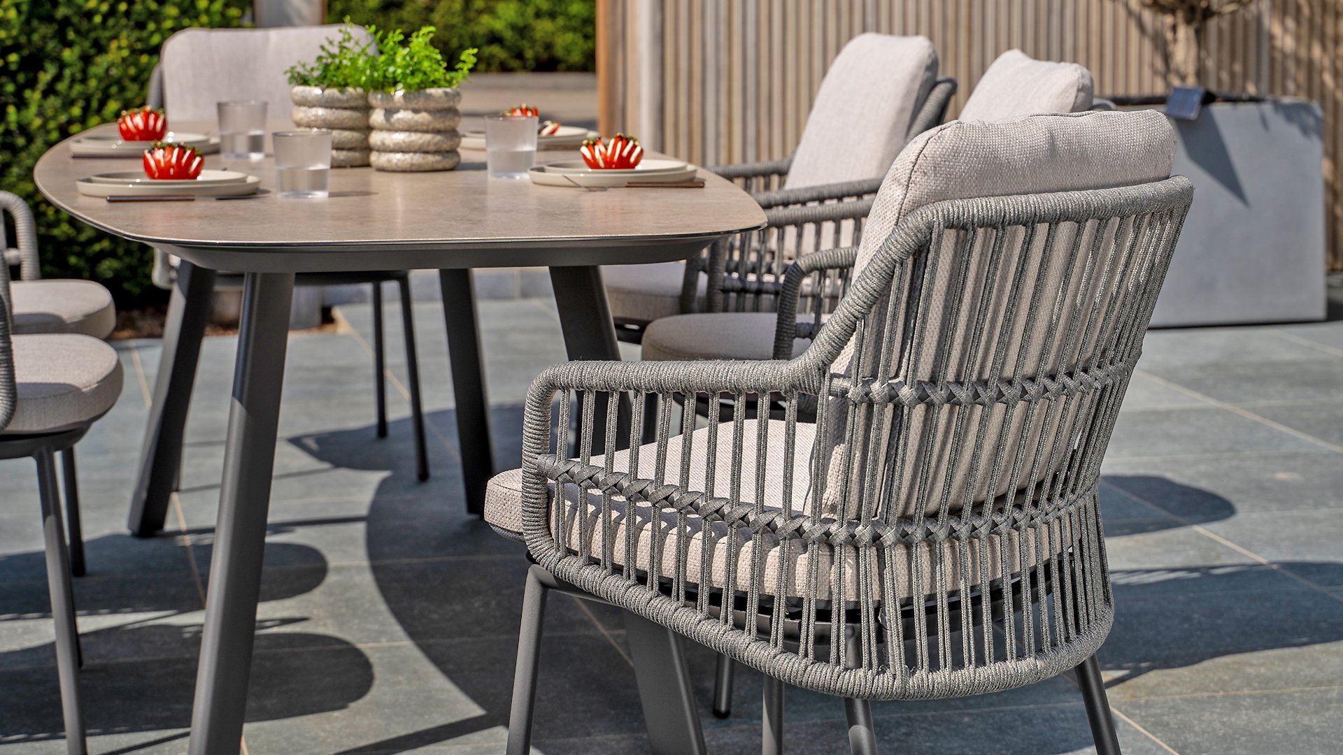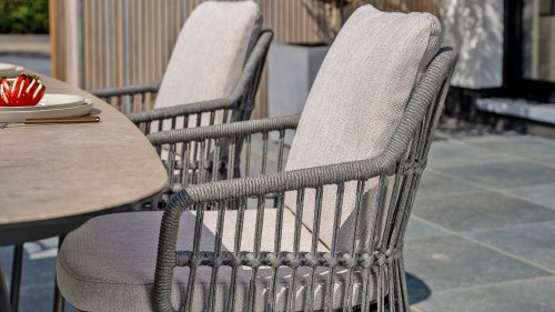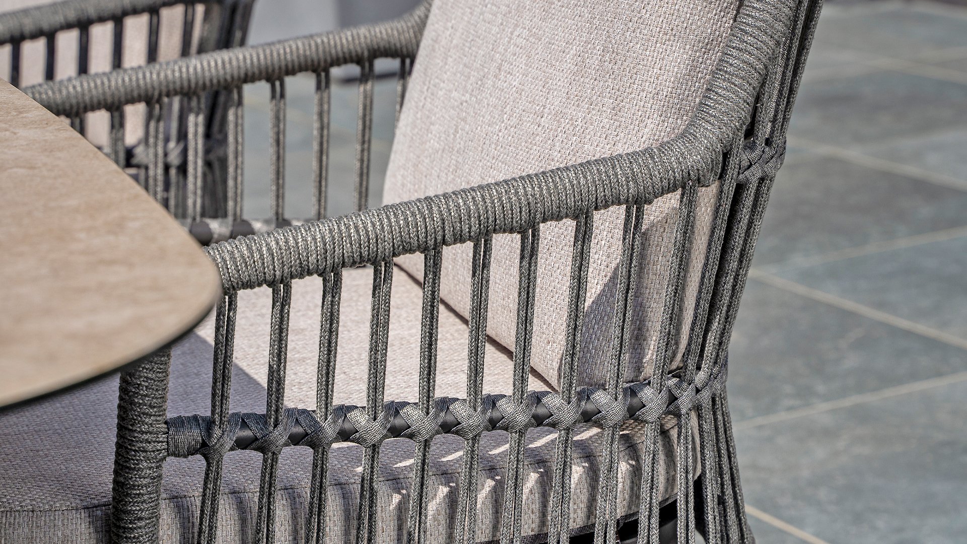 Refined design, perfect comfort. The beautifully shaped curves and anthracite frames make the Alicante an elegant choice for your garden. Whether you're dining or lounging, the comfortable armrests and ergonomic seating enhance your relaxation, while the weather-resistant cushions ensure you can enjoy this collection year-round.