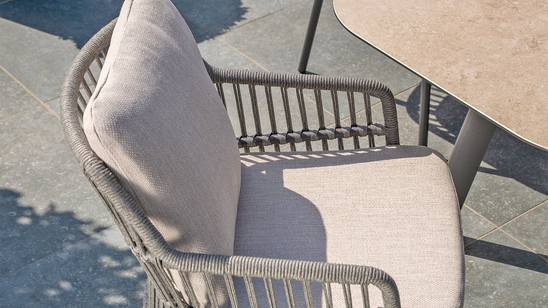 This beautiful material is perfect for outdoor use, because Taste Rope isn't just any shoelace. Taste uses very high-quality rope made from 100% SDP (Solution Dyed Polypropylene). This material is extremely strong and has very little stretch. Polypropylene is oil-based, so dirt and contaminants are virtually insoluble, just like our cushions. Taste offers exclusive designs using hand-woven rope patterns and techniques.