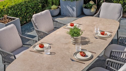 The Taste by 4 Seasons Outdoor Alicante Dining set offers: comfortable support, durable materials, a long-term warranty, and includes cushion(s). A lounge set is also available within the Taste Alicante series.