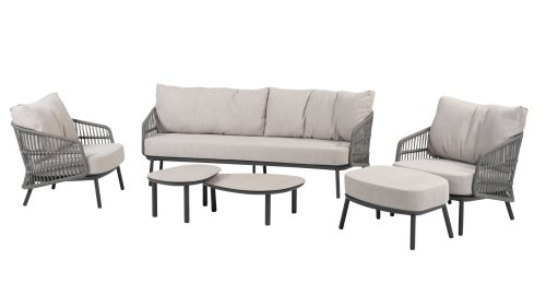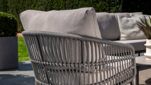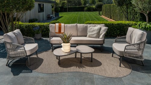 Elegant design, ultimate comfort. Inspired by the relaxed vibes of the Spanish coast, the Alicante lounge brings a touch of Mediterranean luxury to your garden. Its beautifully curved lines and anthracite frames make it a sophisticated choice for any outdoor space. Whether you’re dining or lounging, the ergonomic seating and plush armrests ensure maximum relaxation, while weather-resistant cushions let you enjoy it all year round.