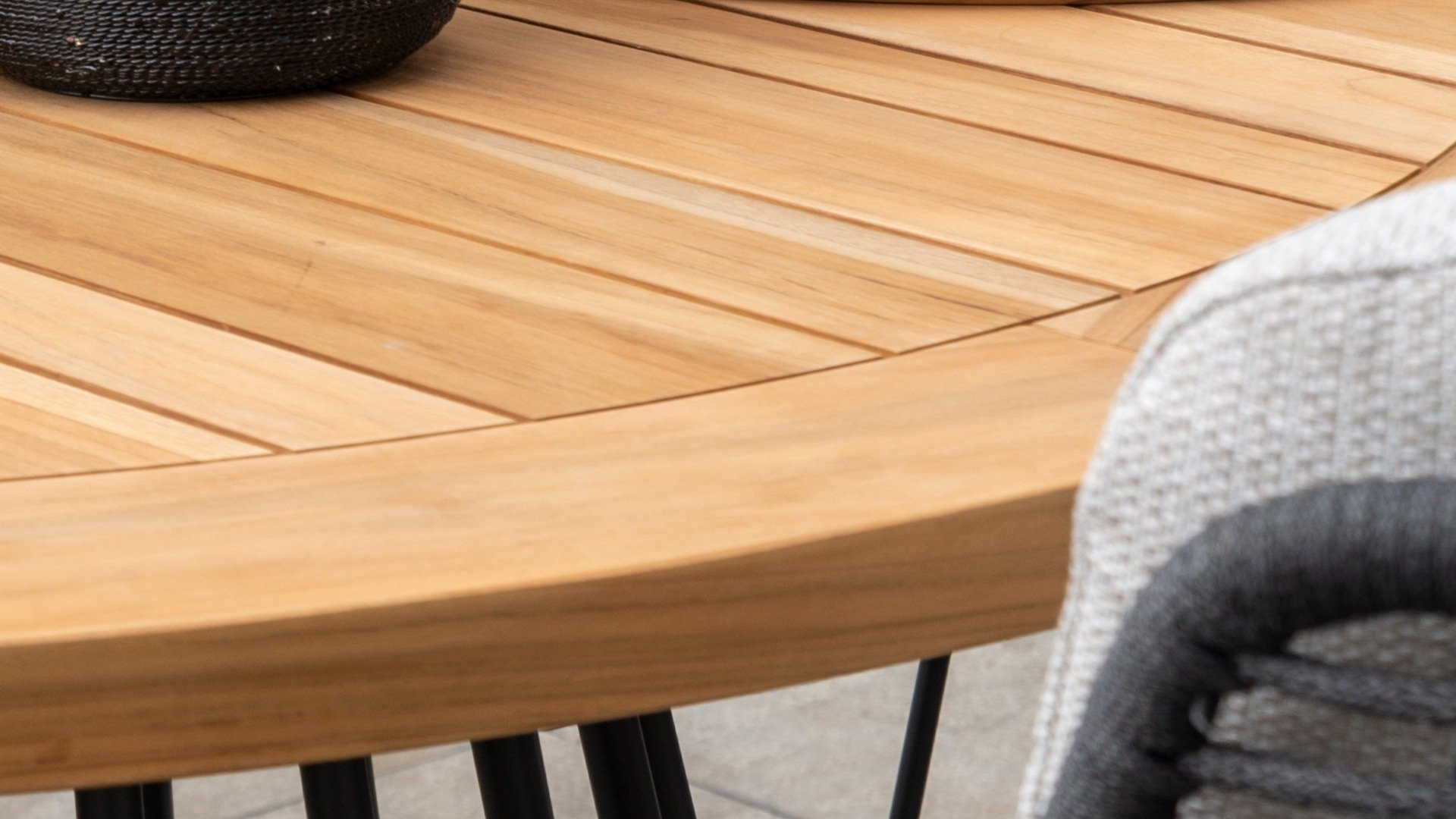 The teak garden table Ambassador is a popular model within the beautiful range of Taste 4SO. Ambassador tables. A striking detail of the teak top of the Ambassador table is the different widths of the planks. This beautiful effect is clearly visible in the detail photos. It creates an original and contemporary look. The base is made of powder-coated stainless steel.
