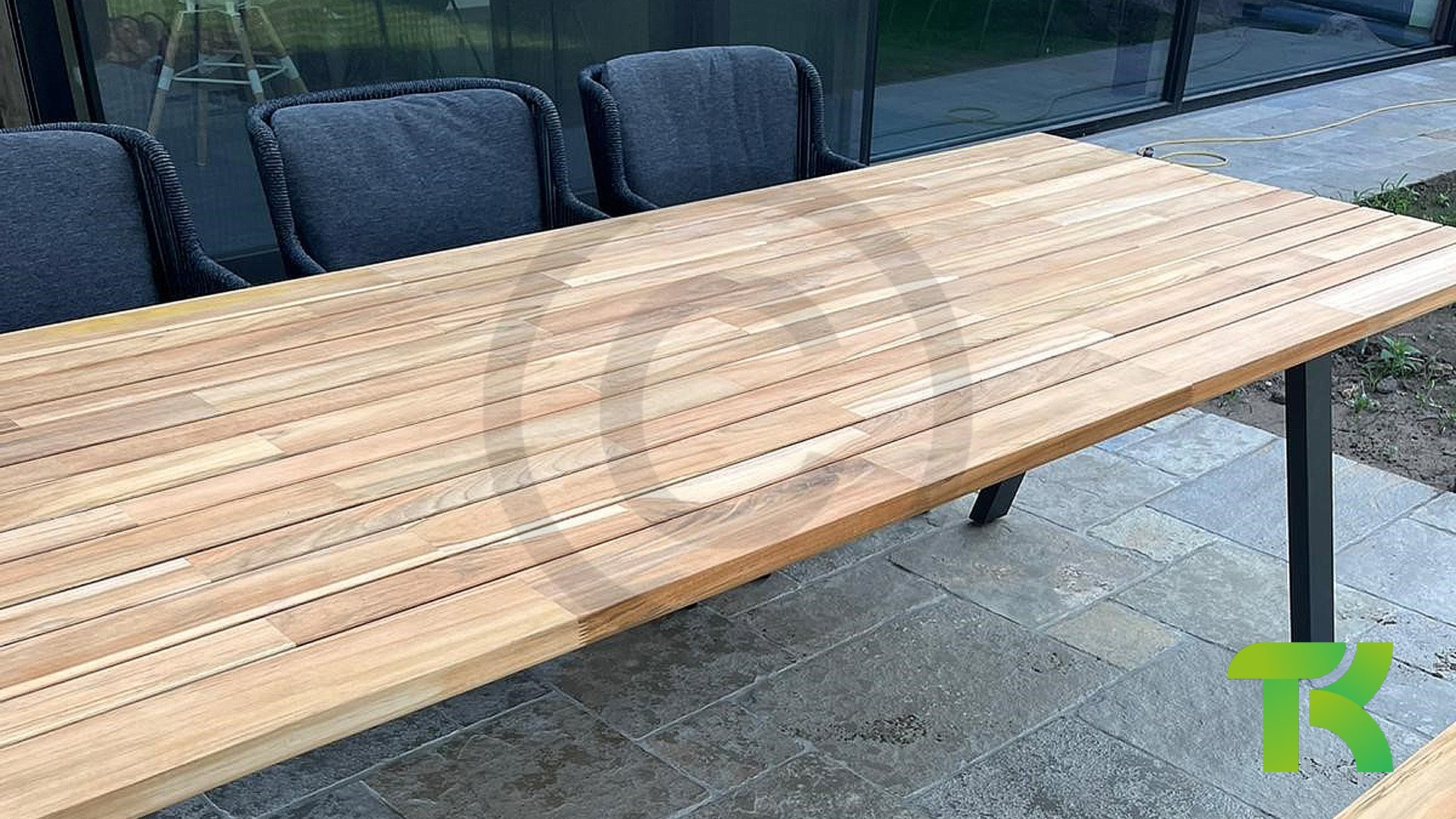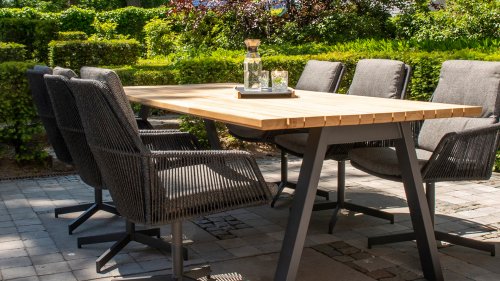 Teak is a natural product and particularly suitable for outdoor use. It is resistant to pests and mold and can withstand sun, rain, and snow. Over time, teak develops a silver-gray patina. Teak is a robust material and requires little maintenance. If you prefer the original color of your teak, you can easily prevent it from turning gray by regularly using our care product. You can also clean teak with green soap. We offer a warranty on all manufacturing and construction defects. This does not cover the working of teak. If you choose teak, we expect you to appreciate these qualities. Hairline cracks that may develop, knots in the teak, and rough surfaces or irregular discoloration over time are not covered by our warranty. These characteristics, which give teak its unique character and appearance, are part of its natural properties. Be careful with a flowerpot or vase on your teak garden table, as this can cause persistent rings or color variations. Imperfections are common; these imperfections are characteristic of this product. These irregularities can never give rise to a claim, warranty, or complaint. This is a mark of originality!