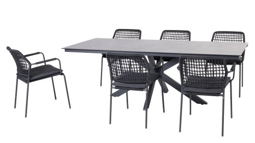 The Barista dining chair comes with a seat cushion, so you can sit comfortably. In addition, the cushion has a zipper and is therefore removable and washable. All in all, this is a great chair that is versatile and fits well in many gardens and terraces. The Barista Taste stackable dining armchair is made of a stainless steel frame. Beautiful round rope is woven into this frame, creating a modern design.