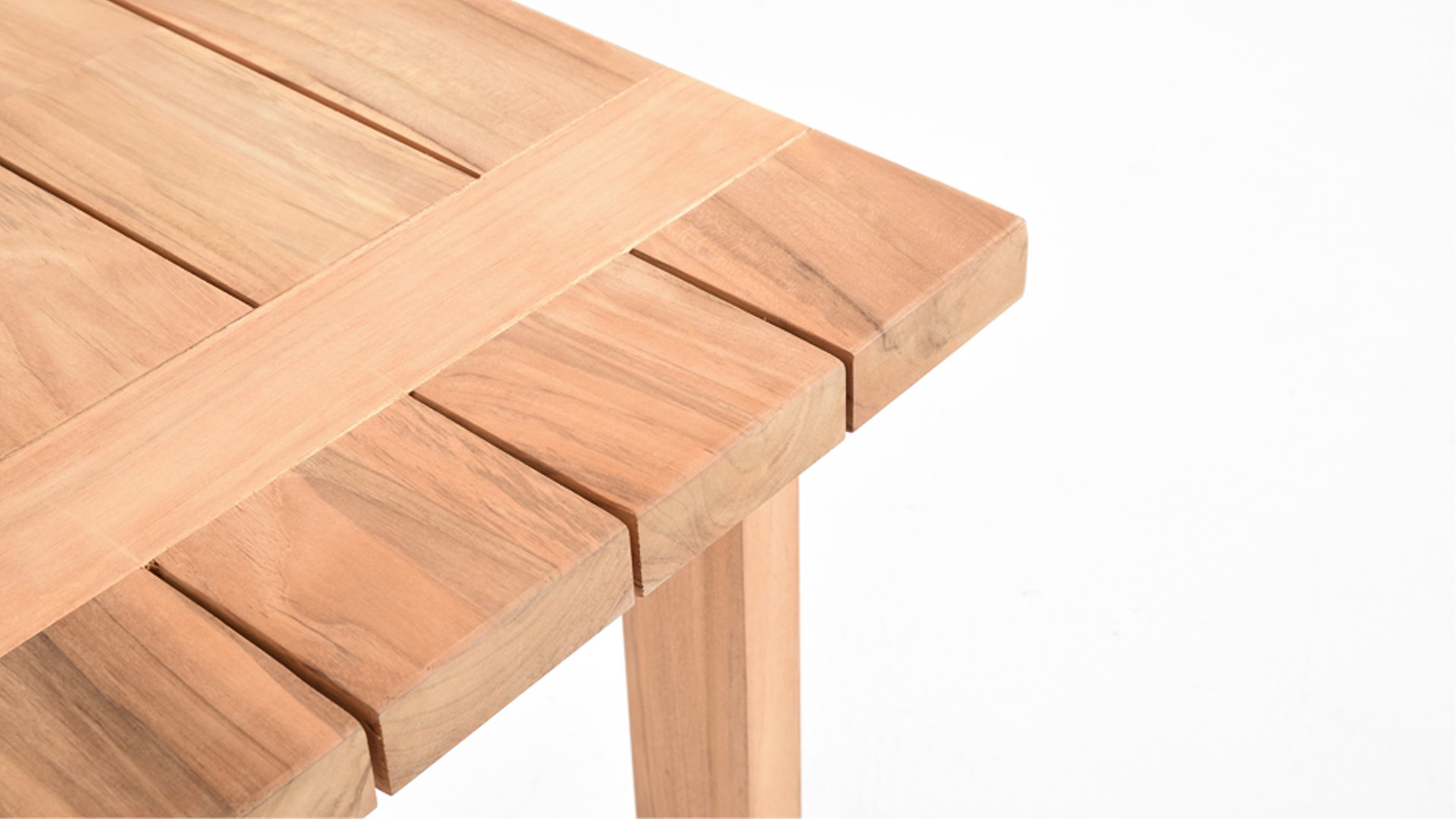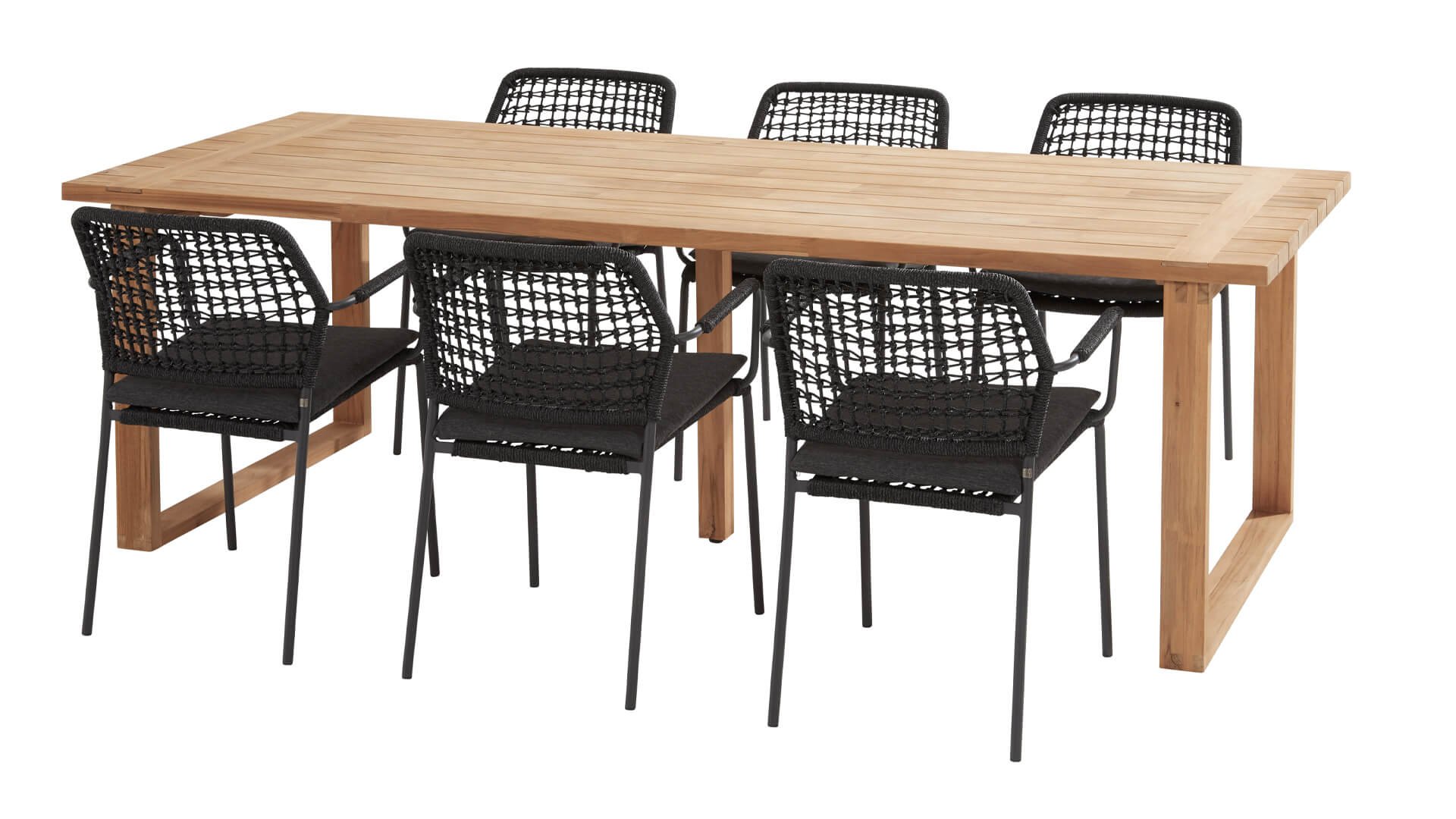 The Spartan 240cm from Taste by 4Seasons Outdoor is a sleekly designed teak table. The crosswise teak plank that extends into the sled leg makes it a playful whole.