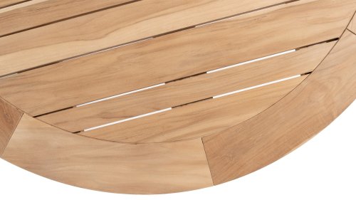 Teak is a natural product and particularly suitable for outdoor use. It is resistant to pests and mold and can withstand sun, rain, and snow. Over time, teak develops a silver-gray patina. Teak is a robust material and requires little maintenance. If you prefer the original color of your teak, you can easily prevent it from turning gray by regularly using our care product. You can also clean teak with green soap. We offer a warranty on all manufacturing and construction defects. This does not cover the working of teak. If you choose teak, we expect you to appreciate these qualities. Hairline cracks that may develop, knots in the teak, and rough surfaces or irregular discoloration over time are not covered by our warranty. These characteristics, which give teak its unique character and appearance, are part of its natural properties. Be careful with a flowerpot or vase on your teak garden table, as this can cause persistent rings or color variations. Imperfections are common; these imperfections are characteristic of this product. These irregularities can never give rise to a claim, warranty, or complaint. This is a mark of originality!