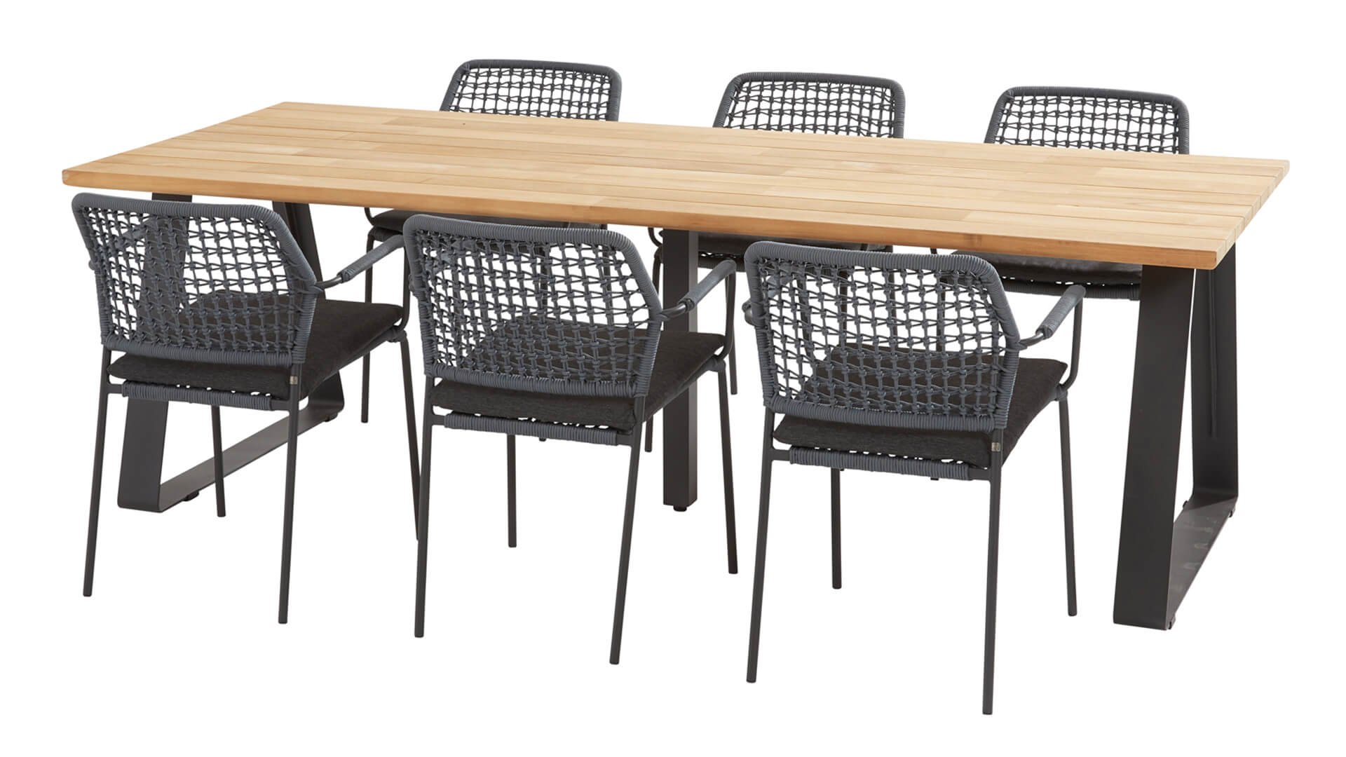 Full of Flavour! The stackable Barista garden chair is a real all-rounder, wonderfully comfortable and very practical, and it also looks nice. It combines very well with several types of tables. This chair is available in 5 colors of rope: Anthracite, Green, Blue, Frozen, and Latte. You are looking at the anthracite variant here. So you can choose which color suits your terrace best, or create a beautiful combination of 2 or even 5 colors. The rope material is weather-resistant and knotted in a block pattern. The rope is subtly brought back in the armrests.