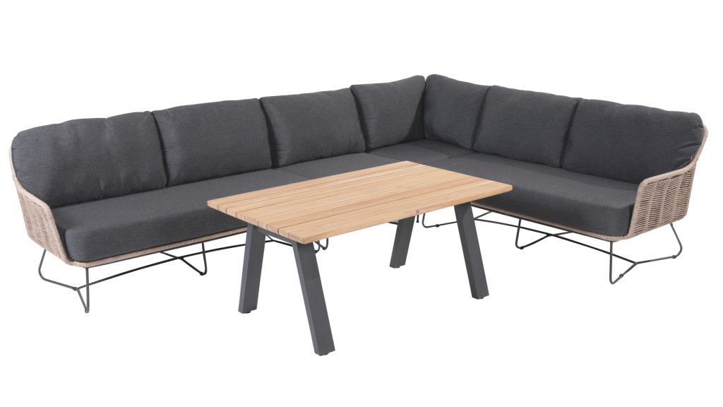 Taste 4 Seasons Belmond Lounge: Beautiful, Bold, Belmond A daring combination of a striking base with elegant rounded corners of the frame with a sleek pattern of anthracite or beige braided material. Belmond Lounge by 4Seasons has it all, enjoy this extensive series.