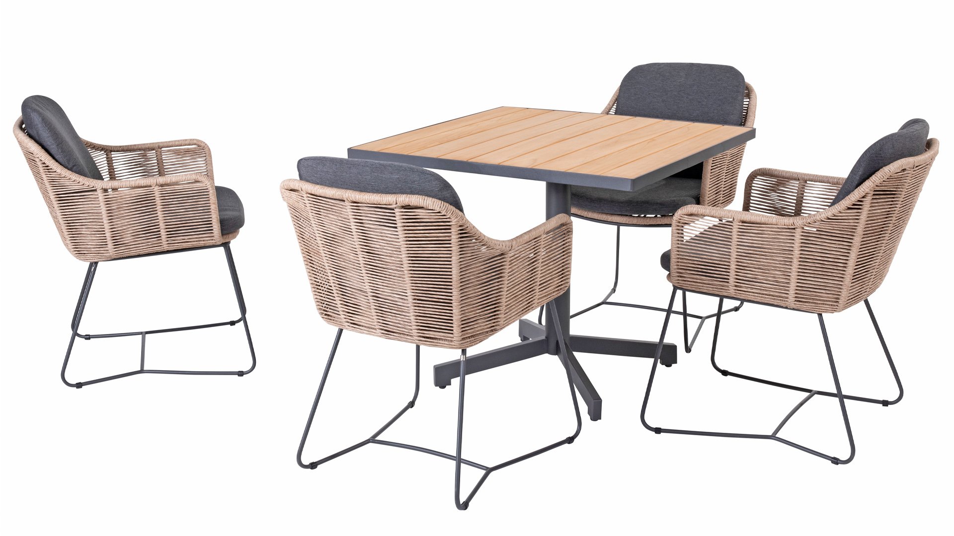 Beautiful, Bold, Belmond A bold combination of a striking base with elegant rounded corners of the frame and a sleek pattern of weaving in anthracite or beige. Belmond Dining from 4Seasons has it all, enjoy this extensive series.