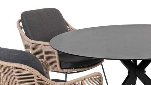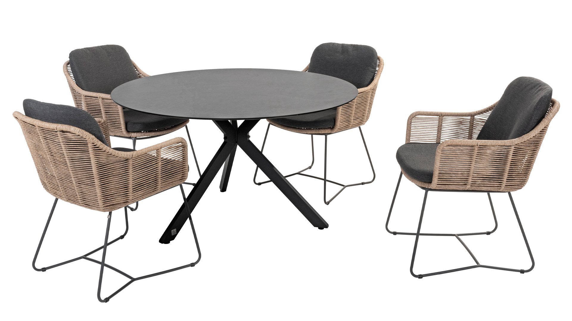 Beautiful, Bold, Belmond A daring combination of a striking base with elegant rounded corners of the frame with a sleek pattern of woven material in anthracite or beige. Belmond Dining by 4Seasons has it all, enjoy this extensive collection.