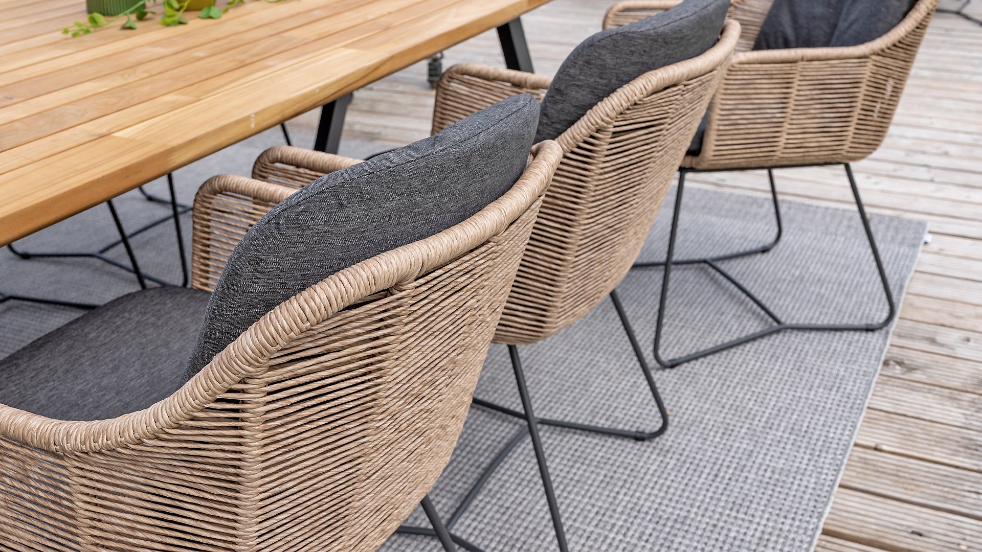 Beautiful, Bold, Belmond A daring combination of a striking base with elegant rounded corners of the frame with a sleek pattern of anthracite or beige wickerwork. Belmond Dining from 4Seasons has it all, enjoy this extensive series.