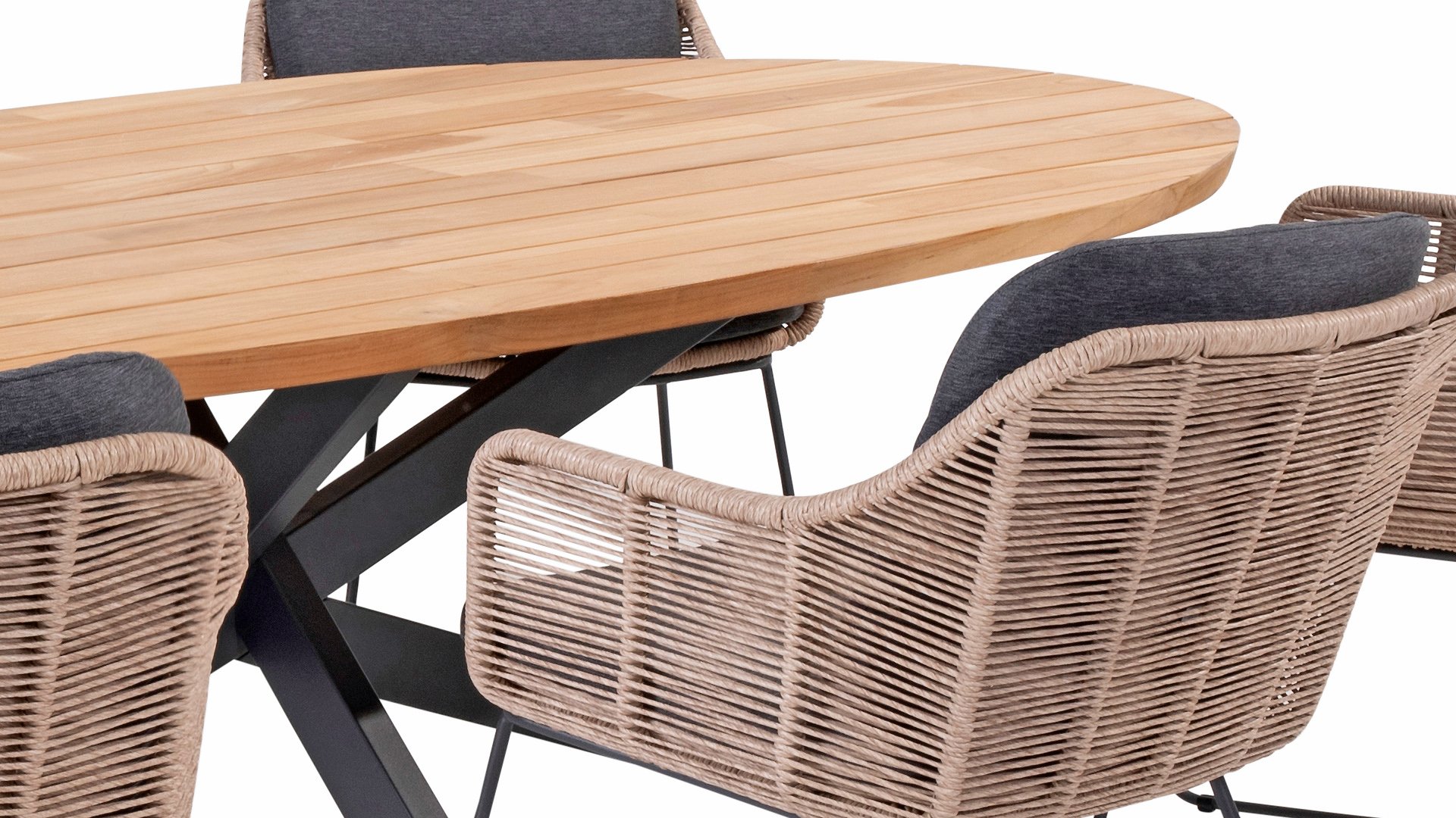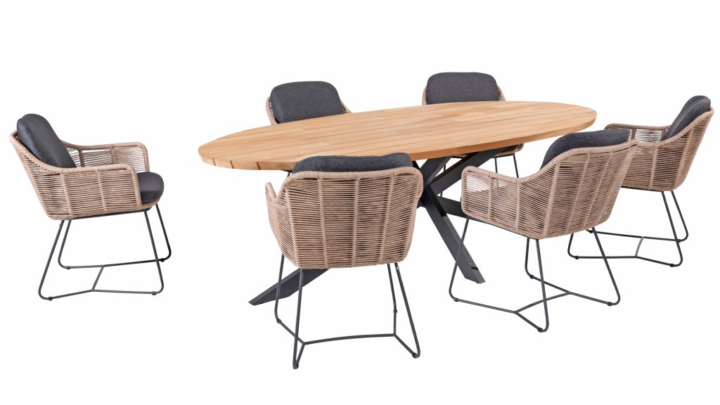 This oval Taste 4SO Prado table can truly be called the top of the collection. The high-quality teak, combined with the beautiful cross base, make this Taste by 4Seasons Prado 240cm table a gem. Combined with almost any dining chair from our collection, there is something for everyone.