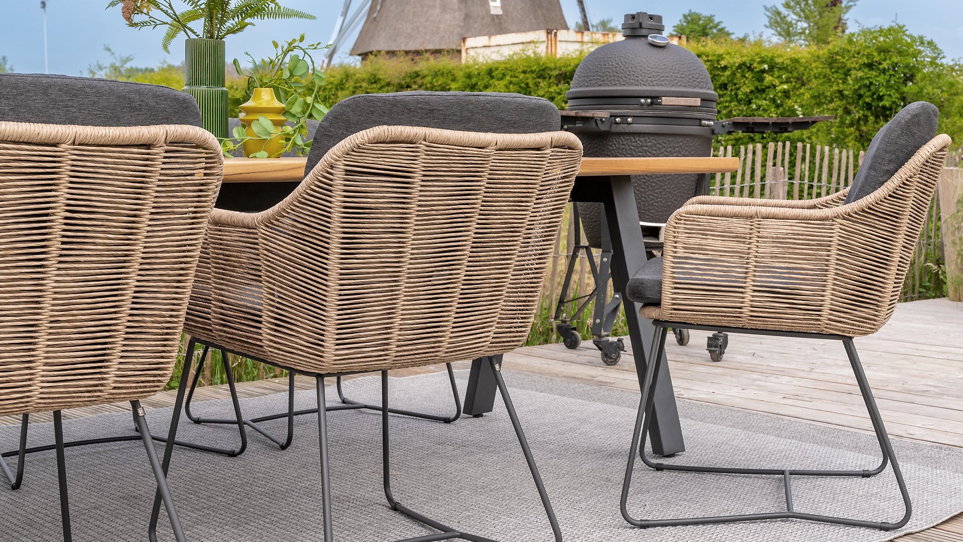 Beautiful, Bold, Belmond A daring combination of a striking base with elegant rounded corners of the frame with a neat pattern of braiding in anthracite or beige. Belmond Dining by 4Seasons has it all, enjoy this extensive series.