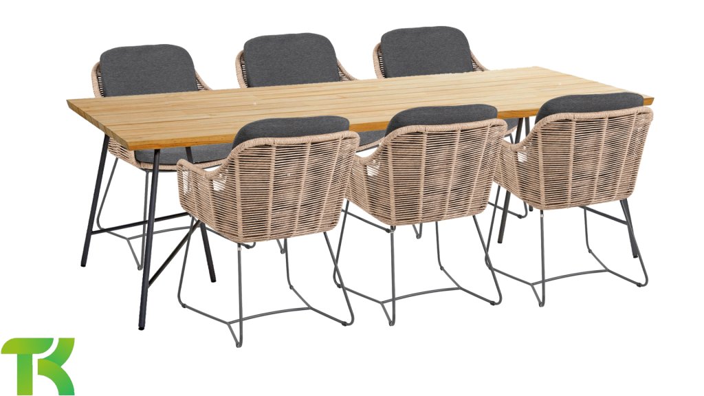 Teak is a natural product and particularly suitable for outdoor use. It is resistant to pests and mold and can withstand sun, rain, and snow. Over time, teak develops a silver-gray patina. Teak is a robust material and requires little maintenance. If you prefer the original color of your teak, you can easily prevent it from turning gray by regularly using our care product. You can also clean teak with green soap. We offer a warranty on all manufacturing and construction defects. This does not cover the working of teak. If you choose teak, we expect you to appreciate these qualities. Hairline cracks that may develop, knots in the teak, and rough surfaces or irregular discoloration over time are not covered by our warranty. These characteristics, which give teak its unique character and appearance, are part of its natural properties. Be careful with a flowerpot or vase on your teak garden table, as this can cause persistent rings or color variations. Imperfections are common; these imperfections are characteristic of this product. These irregularities can never give rise to a claim, warranty, or complaint. This is a sign of originality.