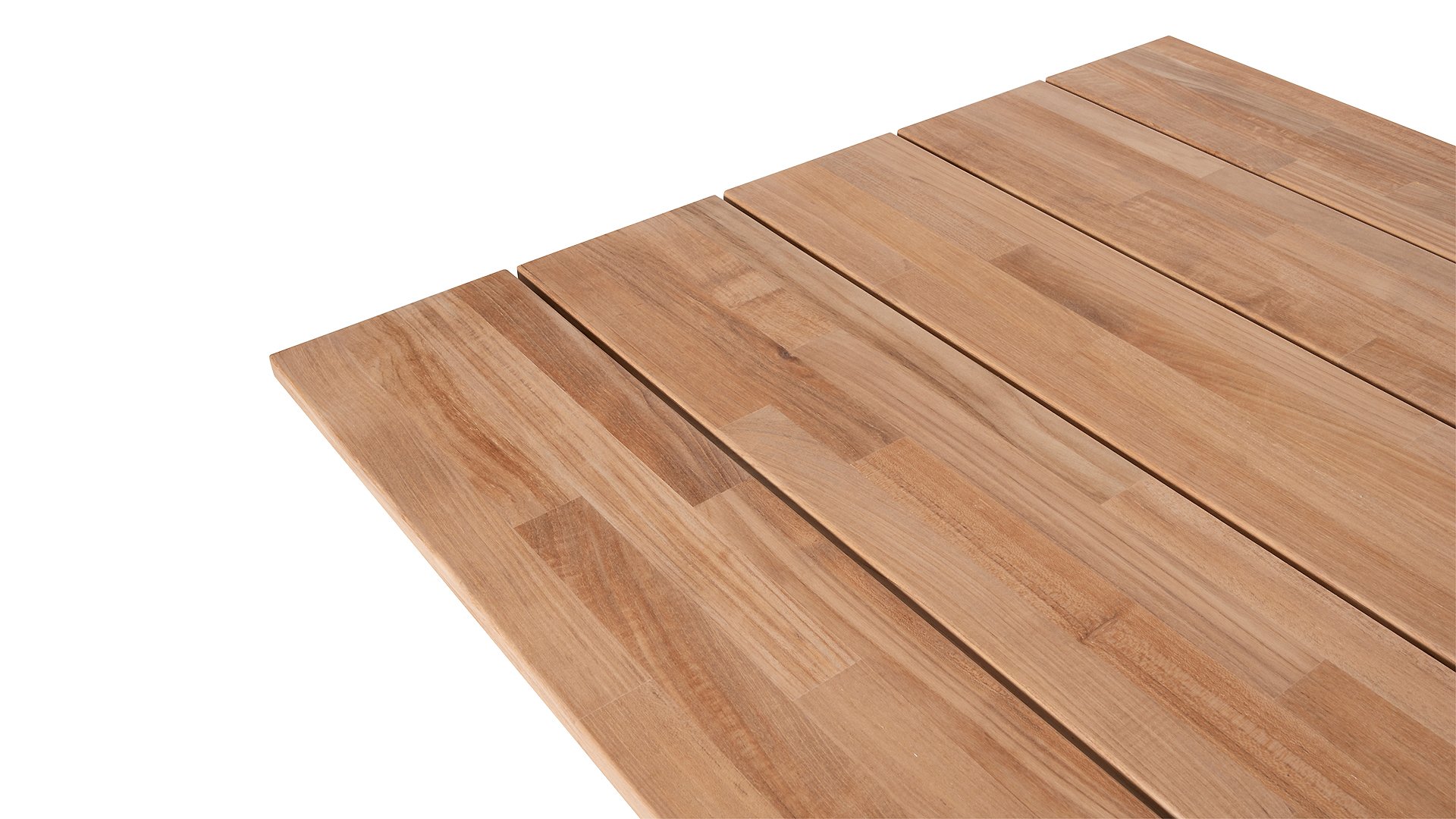 Teak is a natural product and particularly suitable for outdoor use. It is resistant to pests and mold and can withstand sun, rain, and snow. Over time, teak develops a silver-gray patina. Teak is a robust material and requires little maintenance. If you prefer the original color of your teak, you can easily prevent it from turning gray by regularly using our care product. You can also clean teak with green soap. We offer a warranty on all manufacturing and construction defects. This does not cover the working of teak. If you choose teak, we expect you to appreciate these qualities. Hairline cracks that may develop, knots in the teak, and rough surfaces or irregular discoloration over time are not covered by our warranty. These characteristics, which give teak its unique character and appearance, are part of its natural properties. Be careful with a flowerpot or vase on your teak garden table, as this can cause persistent rings or color variations. Imperfections are common; these imperfections are characteristic of this product. These irregularities can never give rise to a claim, warranty, or complaint. This is a sign of originality.