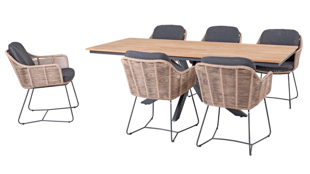 Beautiful, Bold, Belmond A daring combination of a striking base with elegant rounded corners of the frame with a sleek pattern of braiding in anthracite or beige. 4Seasons Belmond Dining has it all, enjoy this extensive series.
