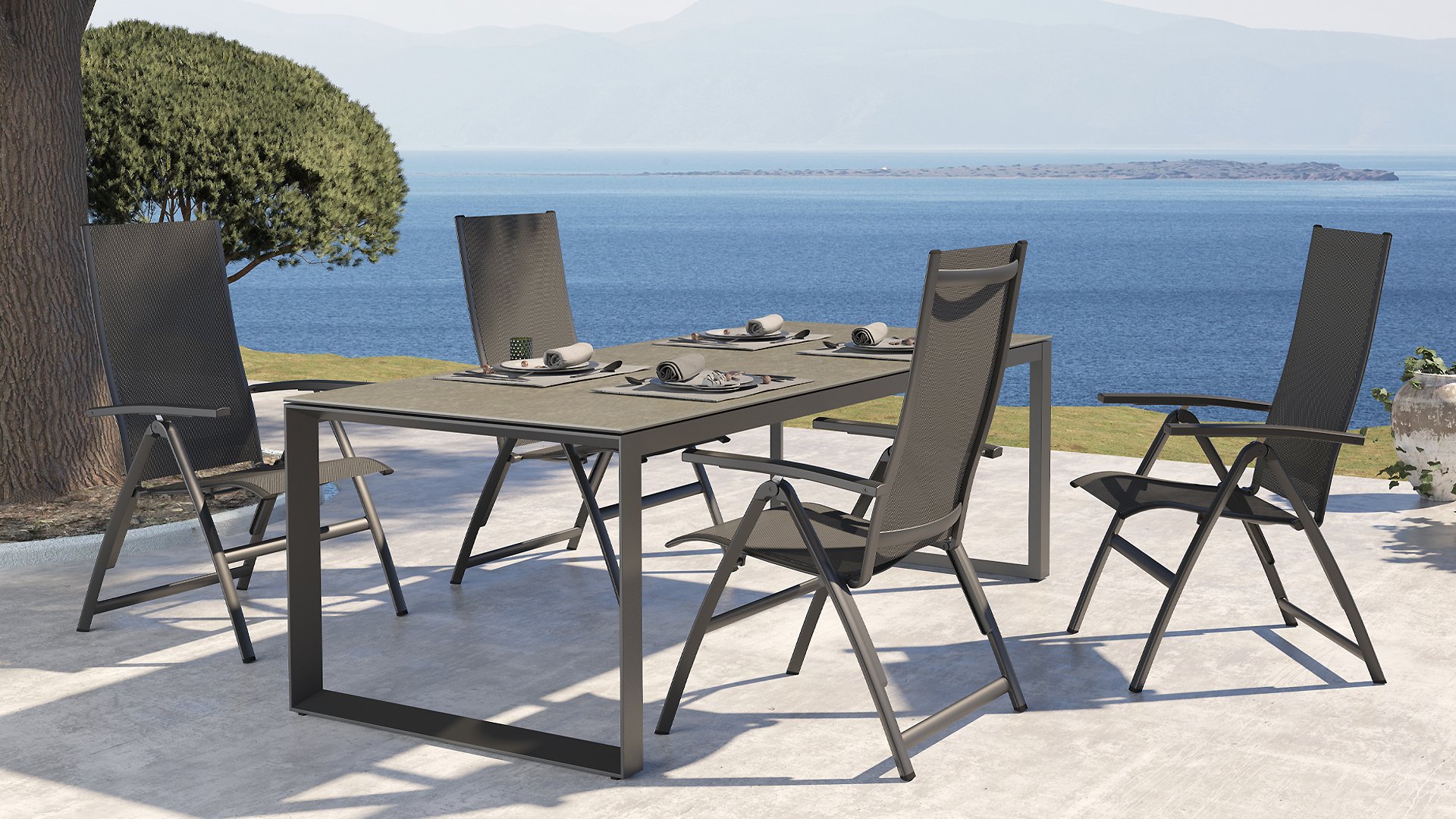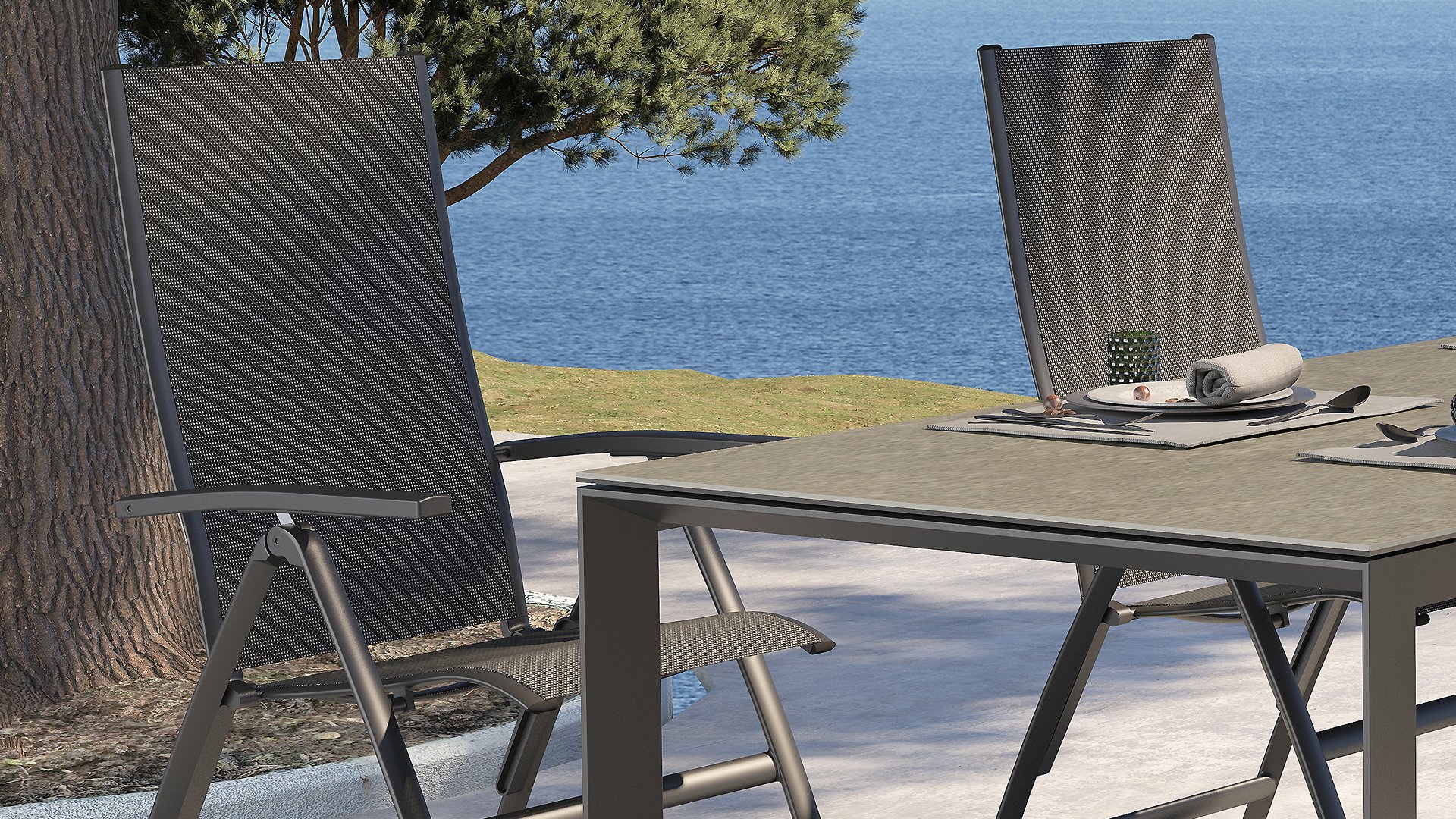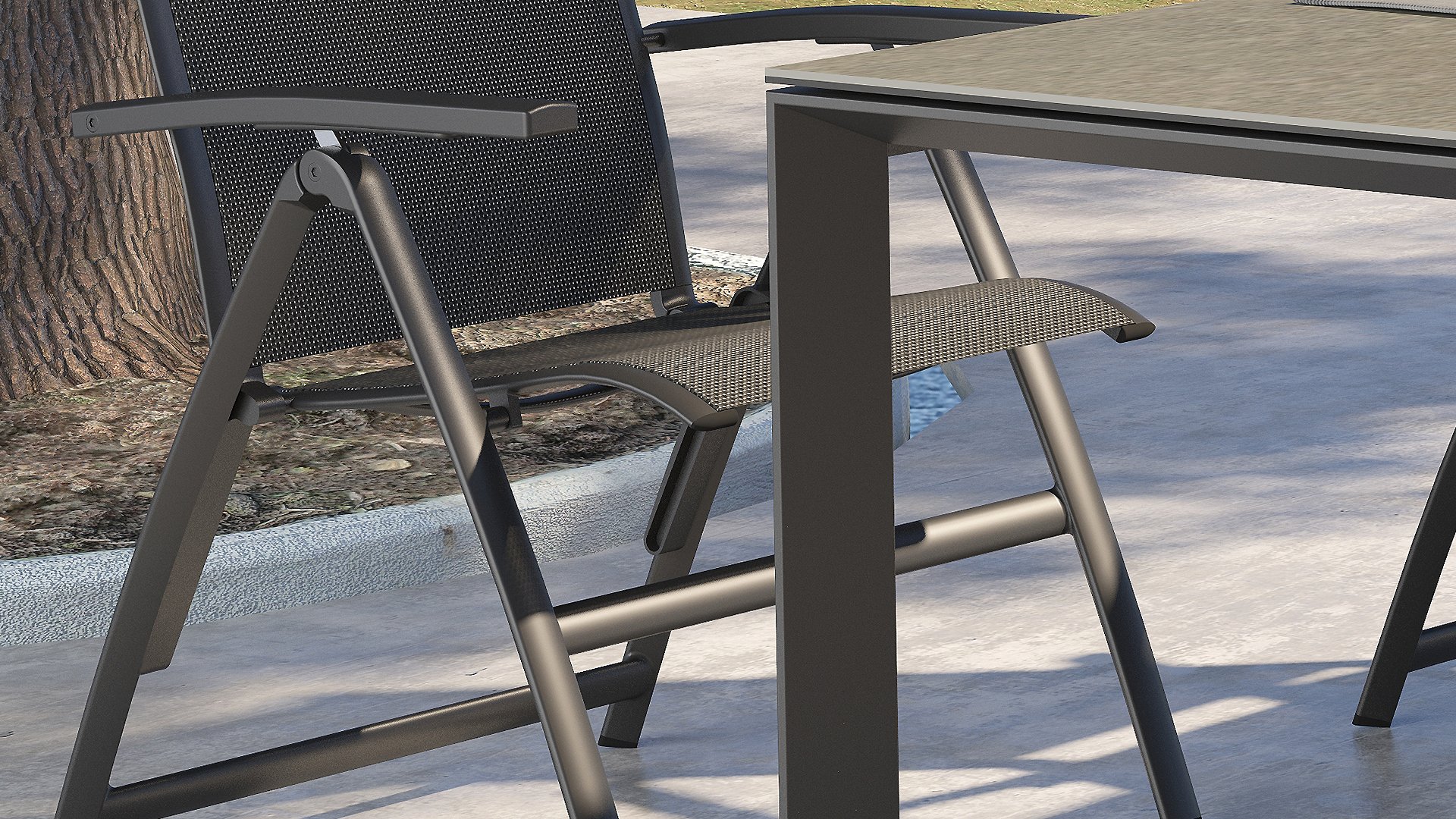 Textilene is made of woven polyester fibers that together form a robust fabric. Thanks to its composition, it is a very durable, long-lasting, dimensionally stable, and colorfast material. As it is a woven fabric, it is water-permeable and dries quickly. This gives it a long lifespan and makes it ideal for outdoor use. Textilene is easy to care for and therefore particularly practical for outdoor applications. It is easy to clean because it is primarily made of polyester. All these properties make Textilene a pleasant material for outdoor use.