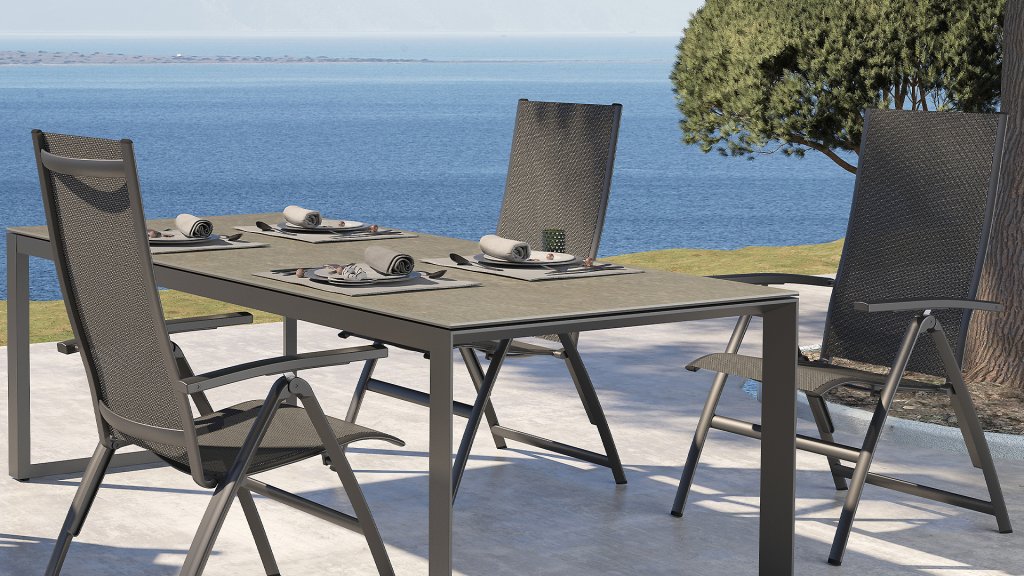 The extremely thin lined seat-back combination gives the Taste by 4SO Cadiz a minimalist design. The chair has a generous seating comfort with its high back and graceful curves. It is a lightweight chair that can be effortlessly folded and stored. The Cadiz adjustable chair fits in any garden and can be combined with almost any table. It certainly looks good with the ceramic on glass Heritage tables, which gives a luxurious look.