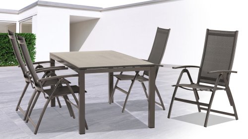 The Taste 4 Seasons Cadiz is a sturdy adjustable chair with an elegant design and excellent seating comfort. 100% aluminum frame, strong, lightweight and maintenance-free. In the beautiful color Anthracite. The adjustable chair, with aluminum frame in Matt Carbon color with textile seat. This adjustable garden chair Cadiz from the garden furniture brand Taste by 4 Seasons is lightweight and easy to fold, so the chairs are not only easy on your balcony and terrace, but also easy to store. You can also leave them outside all year round!