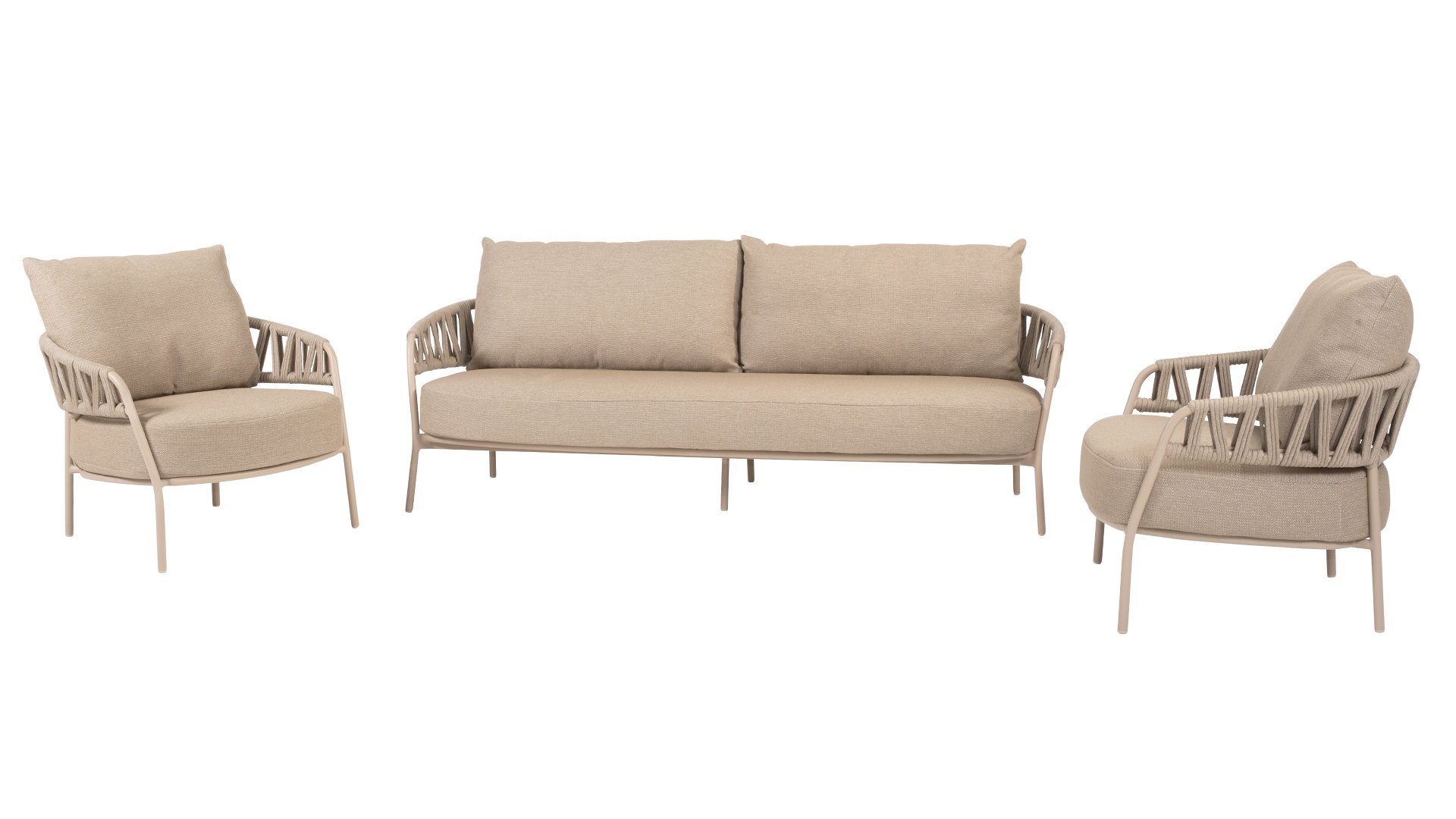 The Calma lounge set offers excellent seating comfort, ideal for long summer evenings, relaxing moments with a book, or cozy get-togethers with family and friends. In addition to the lounge set, the Calma series is also available with a matching Calma dining chair, allowing you to furnish your entire outdoor space in a consistent style. With the Calma lounge set, you combine style, comfort, and durability. Taupe rope and a latte frame create a calm, natural color combination that perfectly matches the name Calma. Create your own outdoor paradise and enjoy every moment in ultimate comfort.