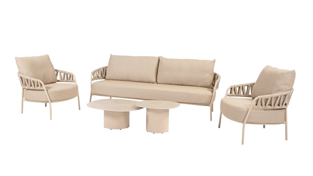 The Calma lounge set offers excellent seating comfort, ideal for long summer evenings, relaxing moments with a book, or cozy get-togethers with family and friends. In addition to the lounge set, the Calma series is also available with a matching Calma dining chair, allowing you to furnish your entire outdoor space in a consistent style. With the Calma lounge set, you combine style, comfort, and durability. Taupe rope and a latte frame create a calm, natural color combination that perfectly matches the name Calma. Create your own outdoor paradise and enjoy every moment in ultimate comfort.