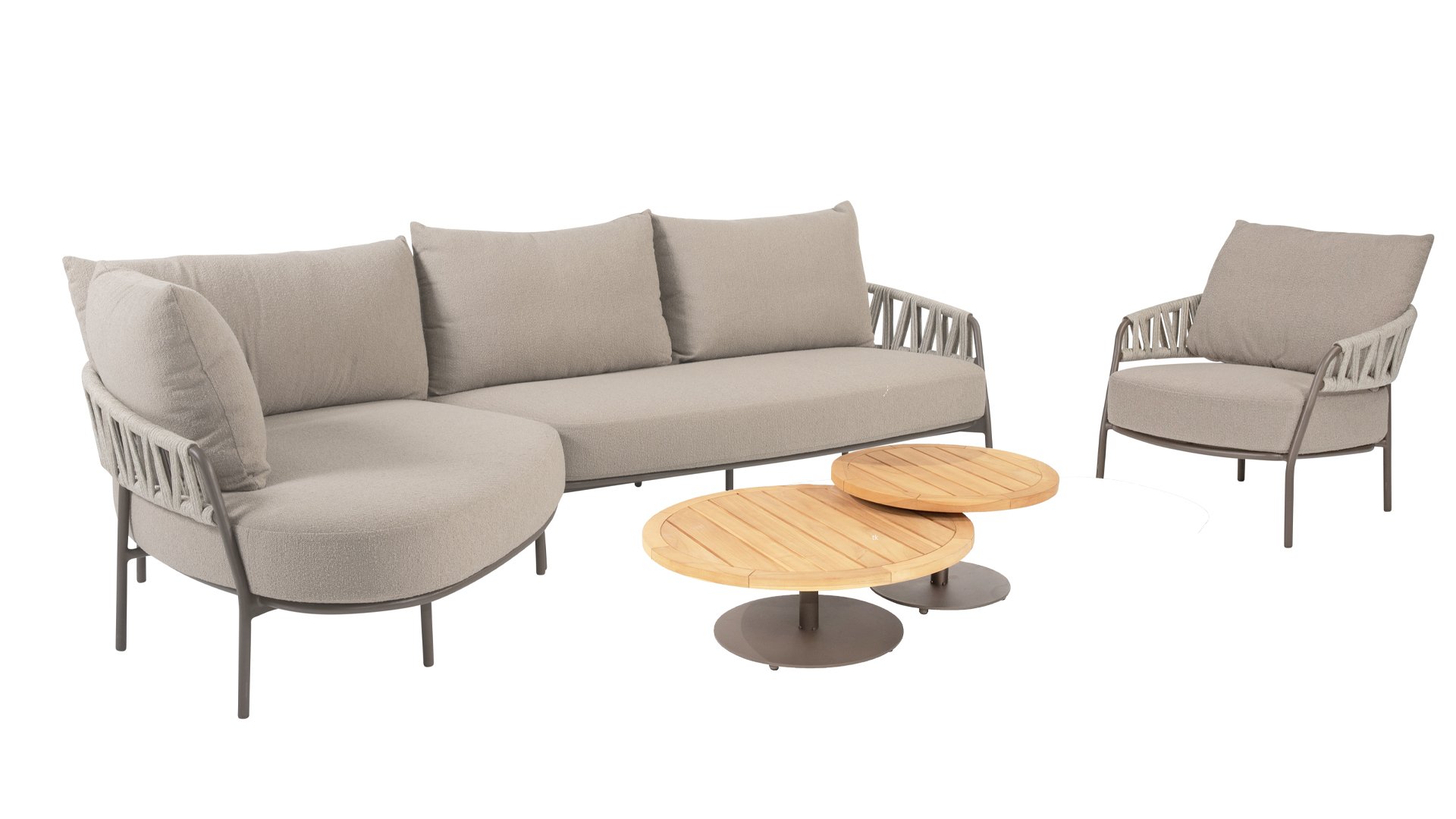 Looking for a lounge set that effortlessly combines comfort, design, and durability? Meet the Taste by 4 Seasons Outdoor Calma Lounge Set—a refined collection that elevates any outdoor space. The armrests and backrests, shaped in a flowing, rounded line around the seat, are finished with high-quality gray rope yarn for an airy, contemporary look. The powder-coated aluminum frame provides a solid foundation and can withstand any season.