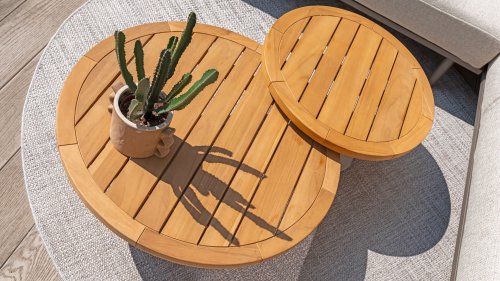 Teak is a natural product and particularly suitable for outdoor use. It is resistant to pests and mold and can withstand sun, rain, and snow. Over time, teak develops a silver-gray patina. Teak is a robust material and requires little maintenance. If you prefer the original color of your teak, you can easily prevent it from turning gray by regularly using our care product. You can also clean teak with green soap. We offer a warranty on all manufacturing and construction defects. This does not cover the working of teak. If you choose teak, we expect you to appreciate these qualities. Hairline cracks that may develop, knots in the teak, and rough surfaces or irregular discoloration over time are not covered by our warranty. These characteristics give teak its unique character and appearance; they are part of its natural properties. Be careful with a flowerpot or vase on your teak garden table, as this can cause stubborn rings or color variations. Imperfections are common; these imperfections are characteristic of this product. These irregularities can never give rise to a claim, warranty, or complaint. This is a sign of originality!