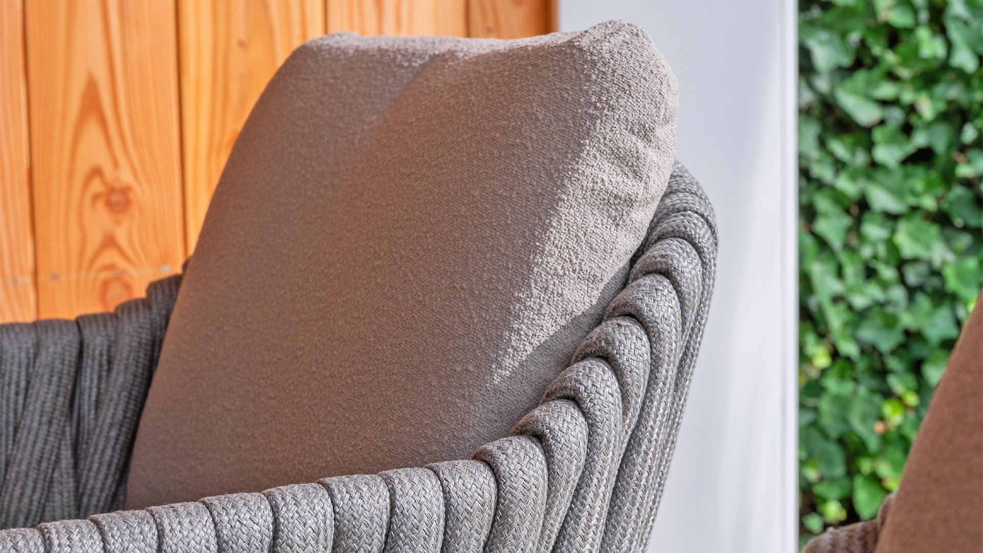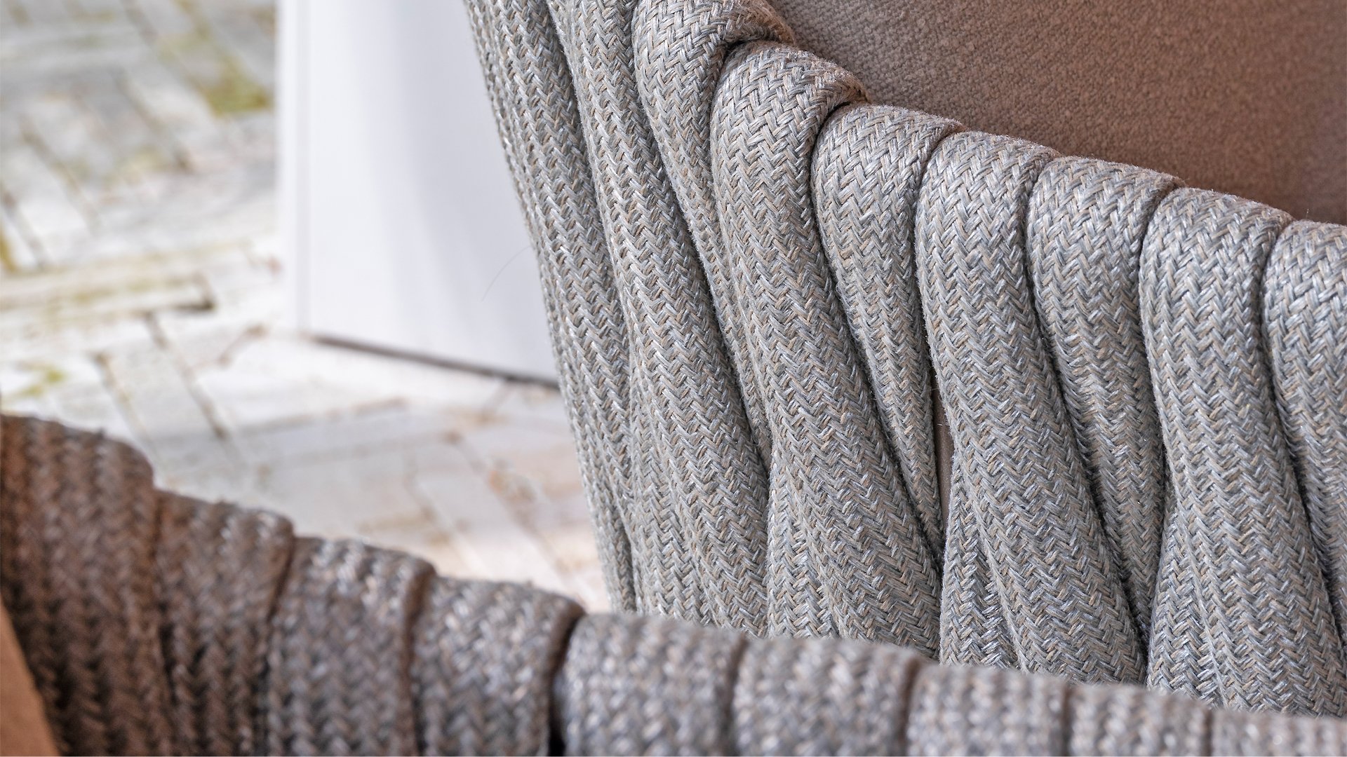 This beautiful material is perfect for outdoor use, because Taste Rope isn't just any shoelace. Taste uses very high-quality rope made from 100% SDP (Solution Dyed Polypropylene). This material is extremely strong and has very little stretch. Polypropylene is oil-based, so dirt and contaminants are virtually insoluble, just like our cushions. Taste offers exclusive designs using hand-woven rope patterns and techniques.