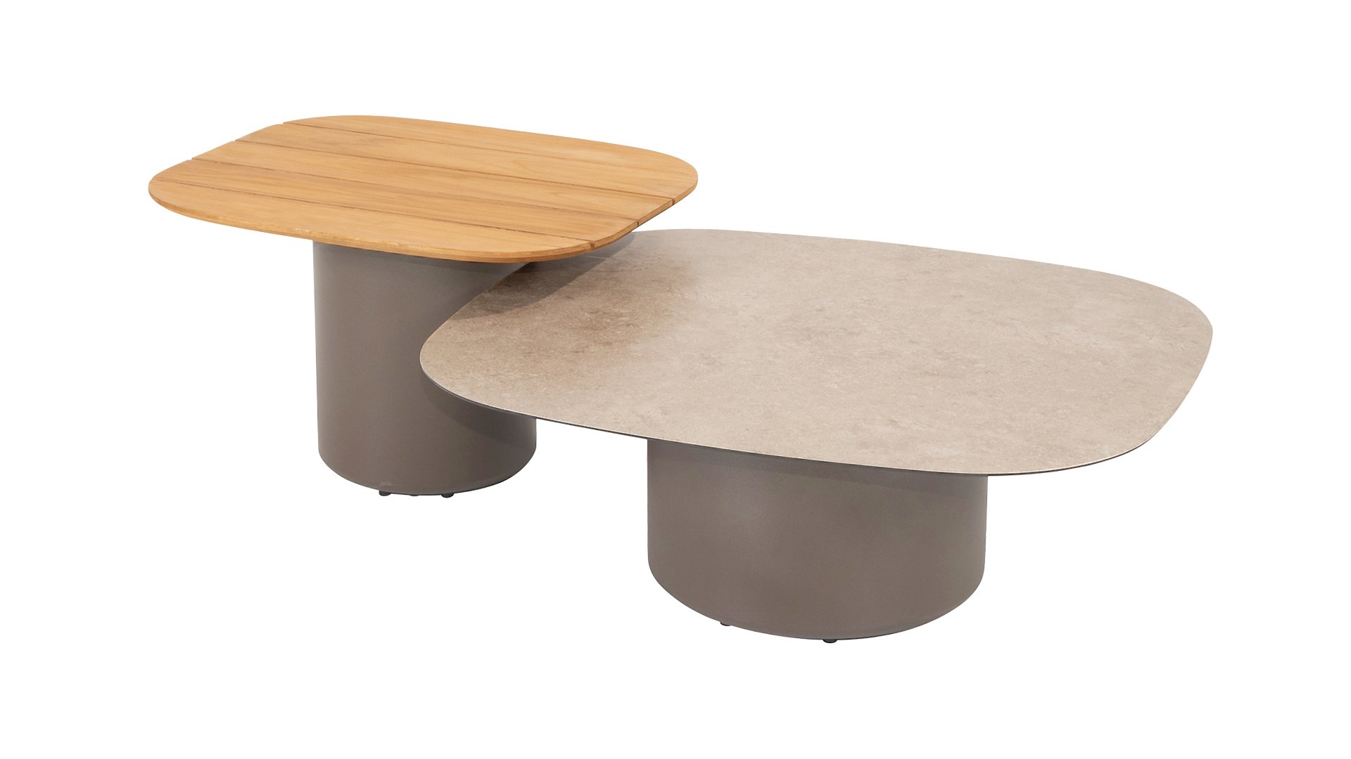It takes two to tango. Why choose just one coffee table when you can have two? With the Taste 4Seasons Demi coffee table set, we always give you one with a teak top and one with a ceramic glass top. Choose the color that matches your lounge set: Latte, Terre, or (Cloud).