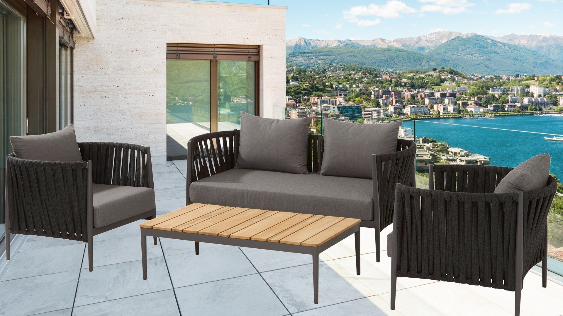 The Taste 4 Seasons Cantori Lounge set has modern and contemporary curves that are characteristic of its design. The beauty lies in the details. The frame of the Taste 4 Seasons Cantori Lounge set seamlessly blends together and is finished with tightly braided Rope, which provides a sturdy yet comfortable seating. The frame forms a playful and minimalist interplay of flowing lines that come together and separate again, with the curves dominating the overall design. A feast for the eyes!