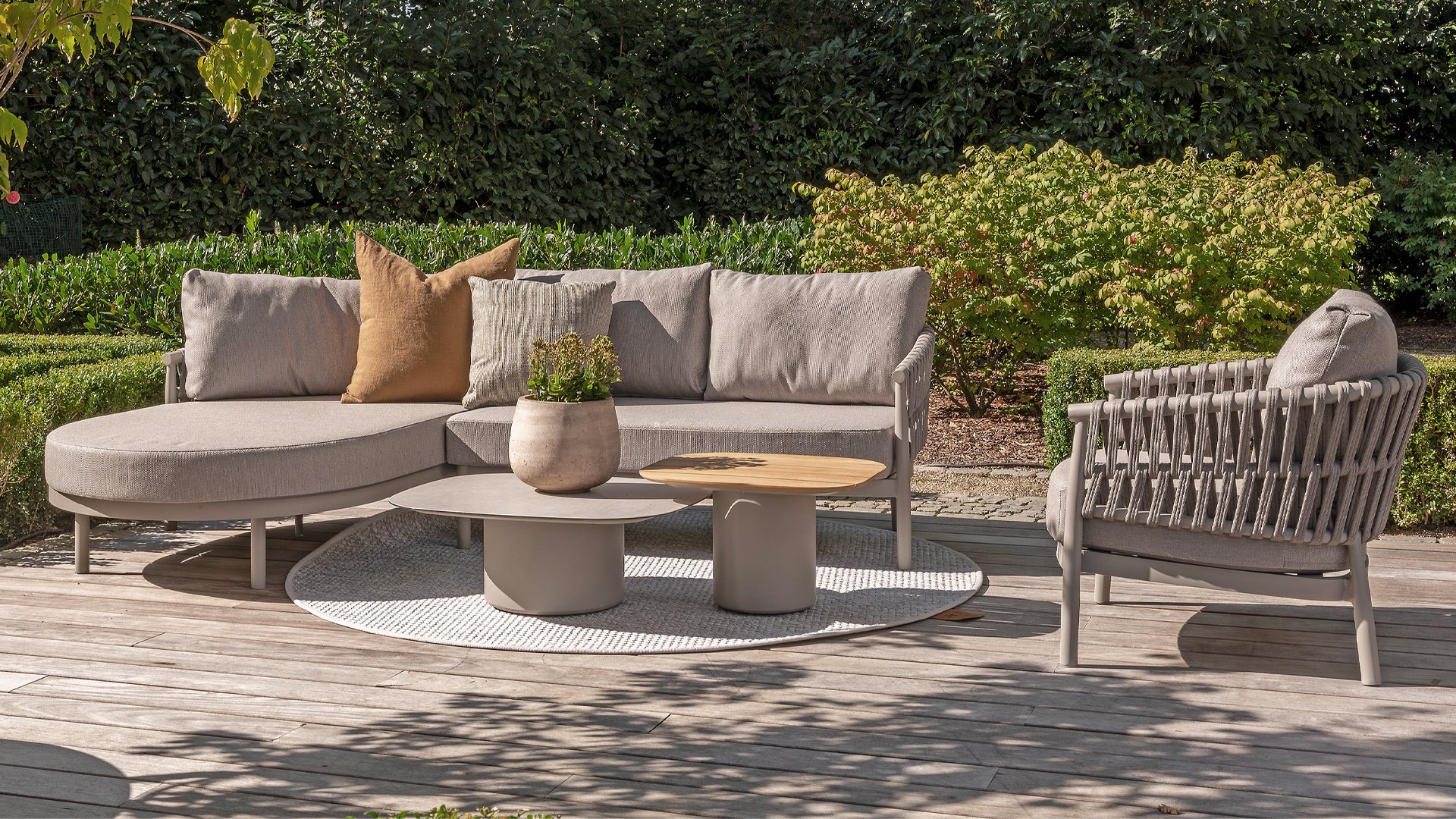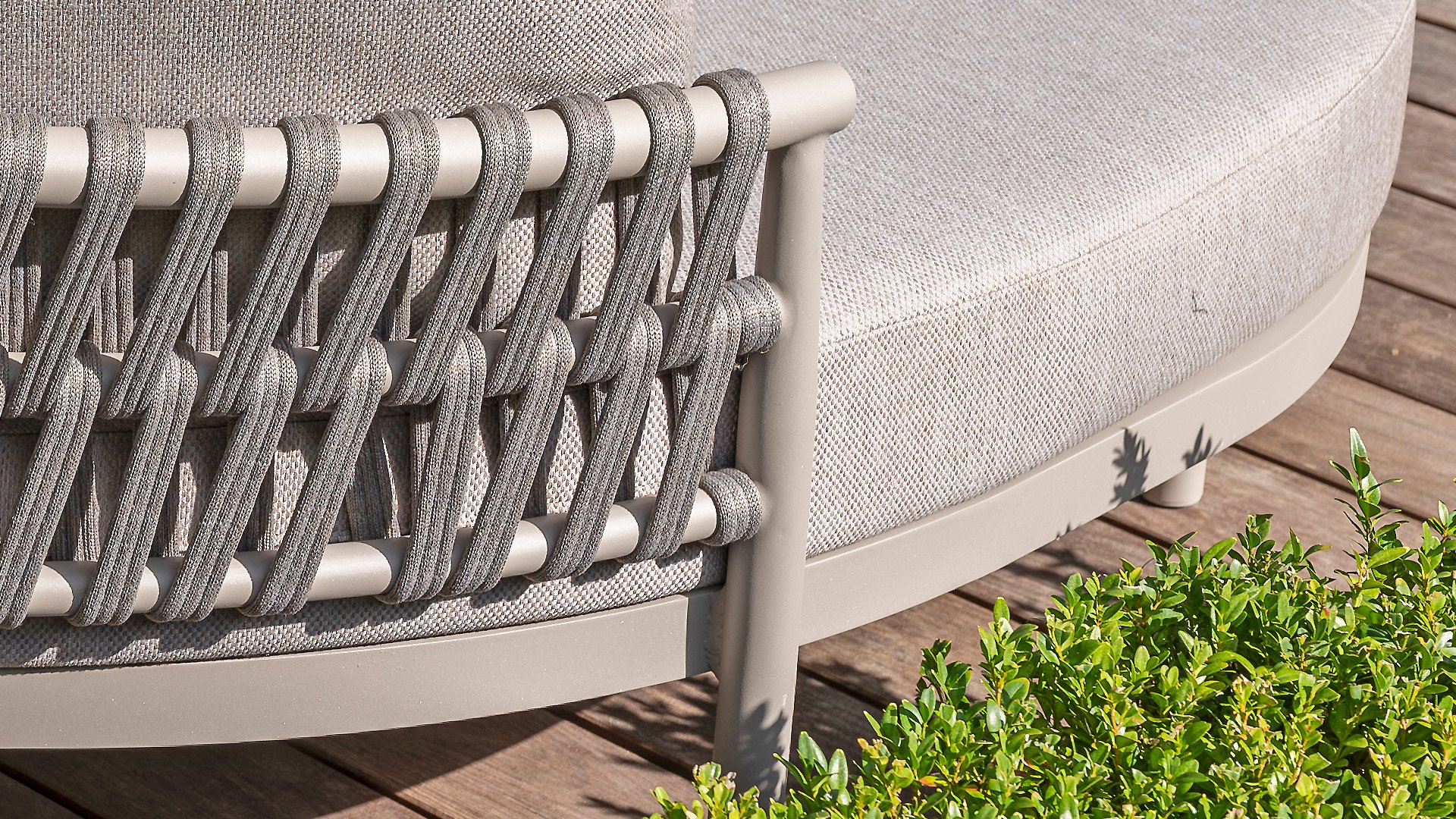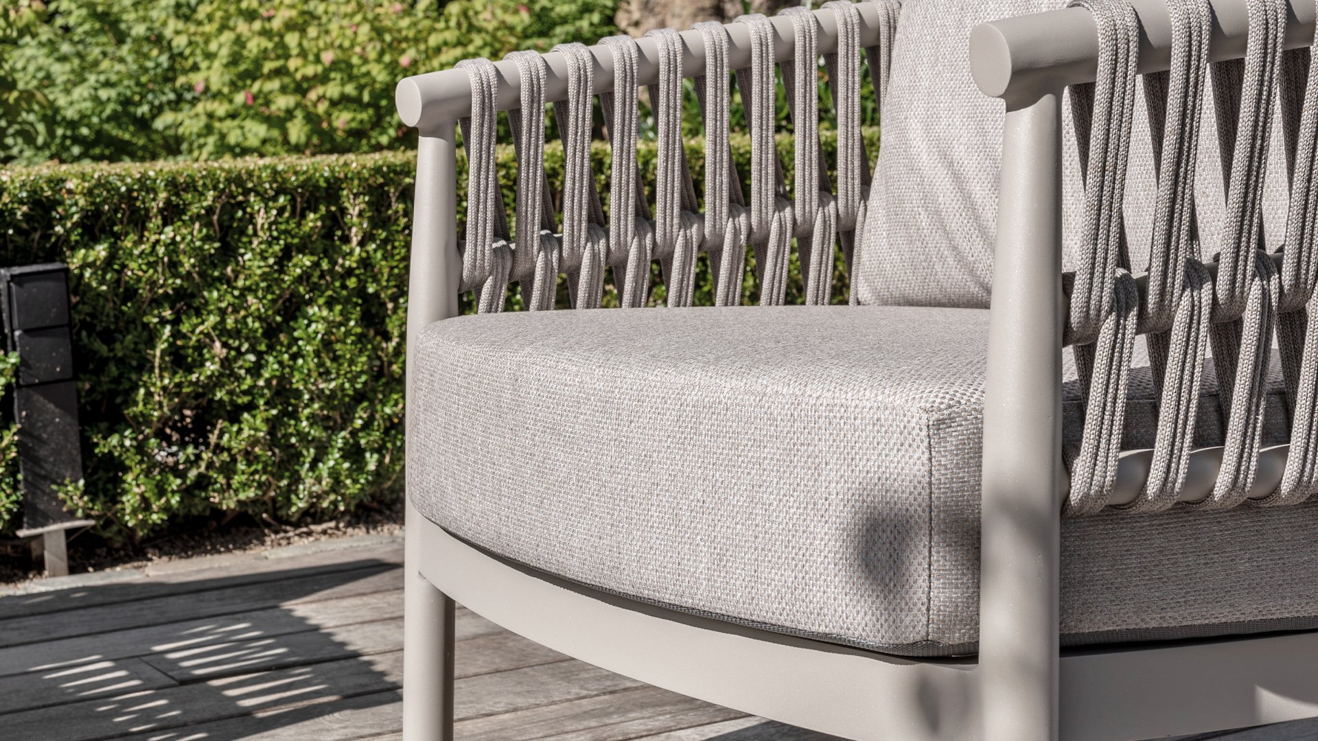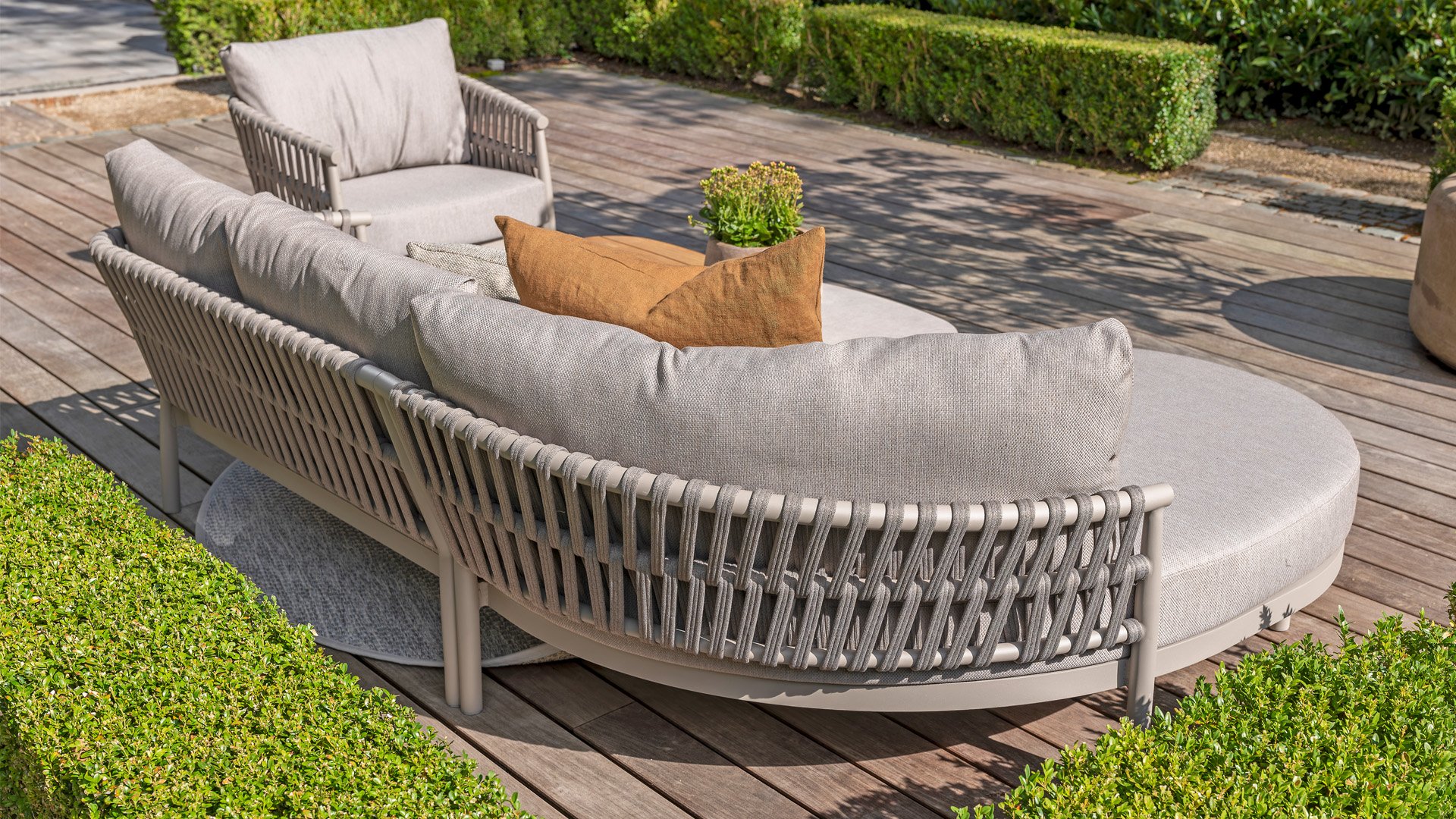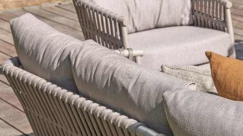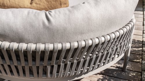 Experience the contemporary design of Catalana. Stylish outdoor living with the extensive Catalana series. The soft gray colors and beautiful Rope patterns give this collection a modern look. Spectacular curves of the lounge set, the dining chair, and the double sunbed give your garden a luxurious and comfortable upgrade.