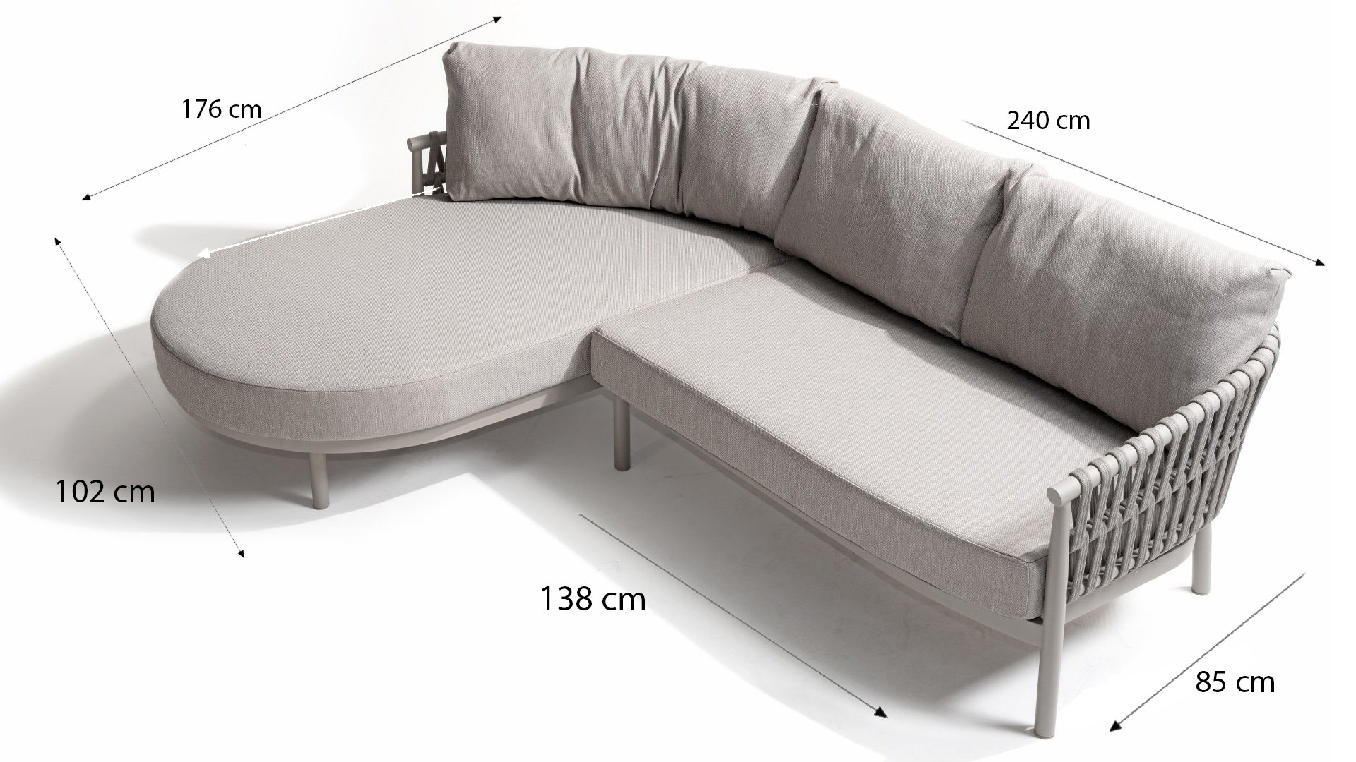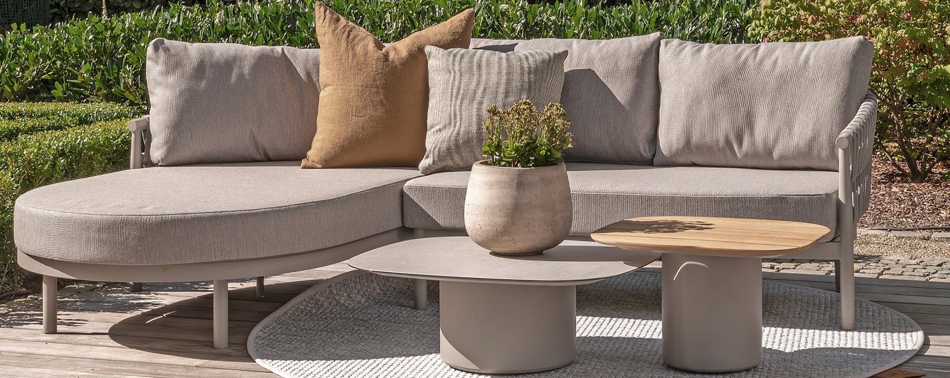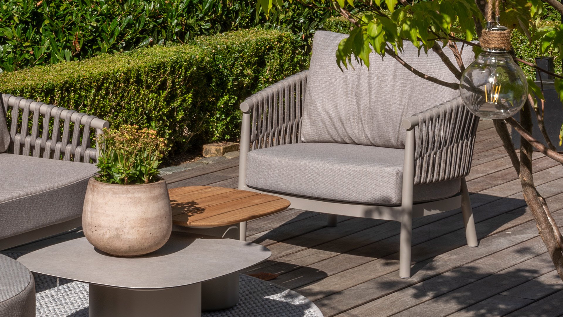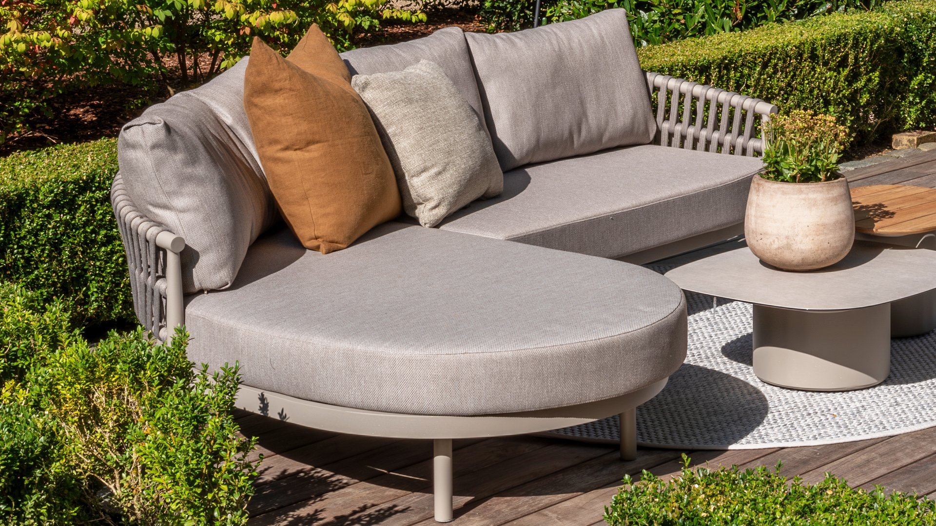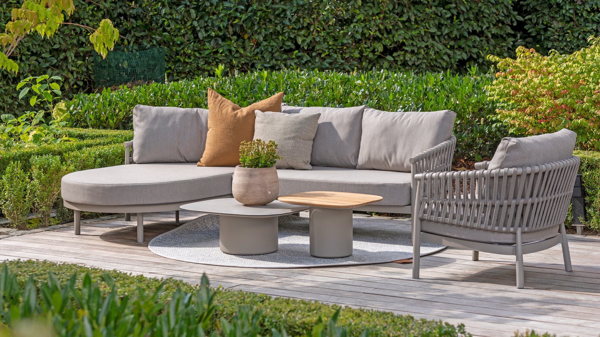 Experience the contemporary design of Catalana. Stylish outdoor living with the extensive Catalana series. The soft gray colors and beautiful Rope patterns give this collection a modern look. Spectacular curves of the lounge set, the dining chair, and the double sunbed give your garden a luxurious and comfortable upgrade.