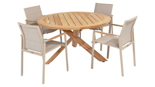 You can certainly call this table the highlight of the collection. The high-quality teak, in combination with the beautiful cross base, makes this Taste by 4Seasons Prado Ø130cm table a gem. It can be combined with almost any dining chair from our collection, so there is something for everyone. It can also be combined with the Prado Lazy Susan. The top is available in both teak and ceramic.