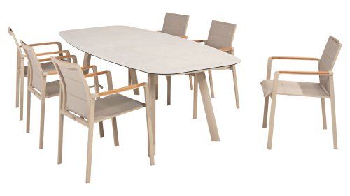 Bring Italian allure to your garden with sleek lines and ultimate comfort. The Taste by 4 Seasons Outdoor Cortina is designed for those who appreciate sleek and functional design. The frame is crafted from high-quality powder-coated aluminum, giving it a modern look and durability. The seat and backrest are made of premium Olefin fabric. This material feels surprisingly soft and offers exceptional comfort, allowing you to dine for hours without even needing extra cushions.