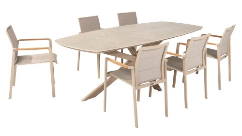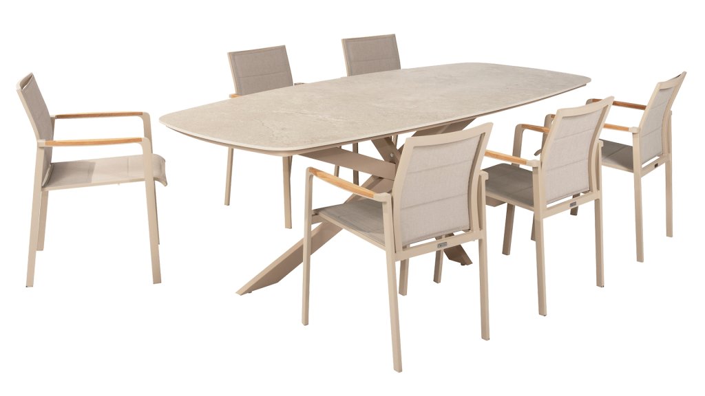 1 x Taste 4Seasons Prado barrel table ceramic-alu Latte  240x105cm
