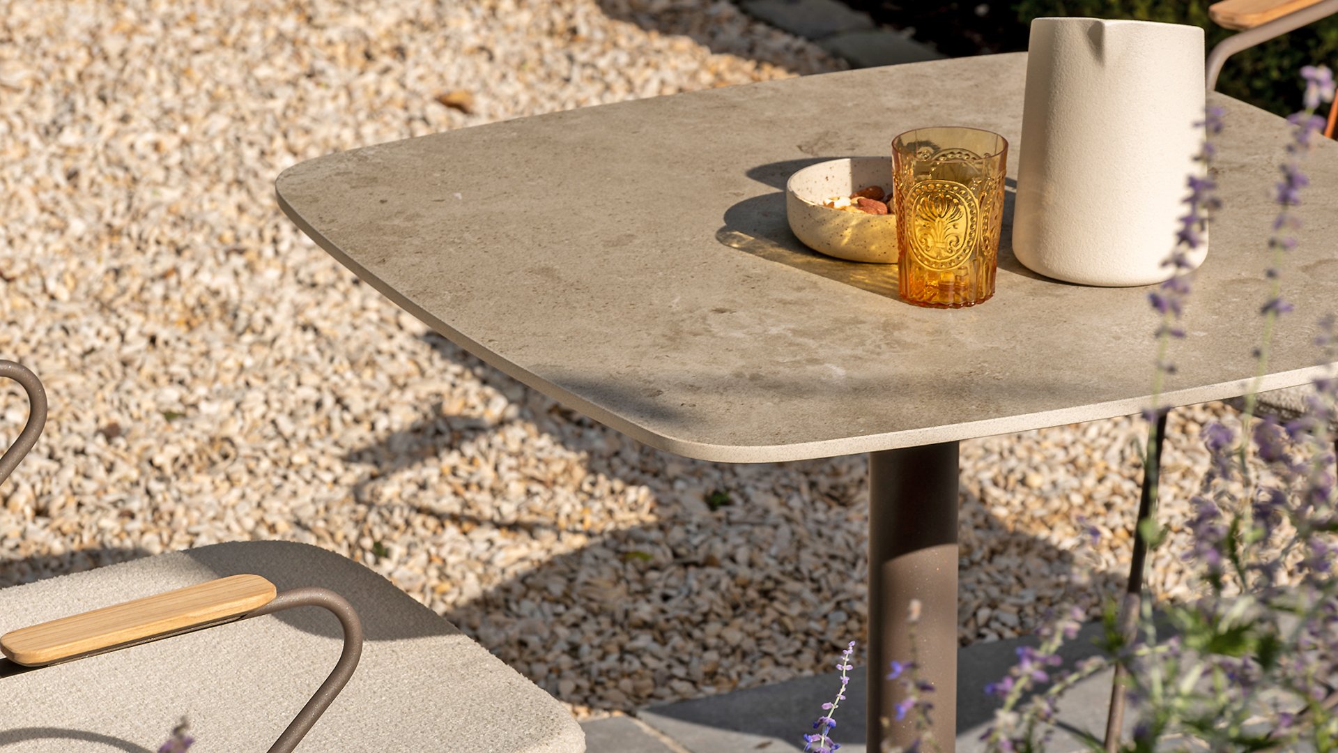 A ceramic top is made of two or three thin layers of ceramic material. Ceramic material is hard-fired and therefore has excellent properties. For normal soiling, simply wipe the top with a damp cloth. Stains can be removed with lukewarm water and green soap, and limescale can be treated with natural vinegar. However, never use harsh abrasives, such as sandpaper, or aggressive agents such as acids and chemicals. Spills of this kind must be removed immediately to prevent irreparable damage. Note: We strongly advise against cleaning your aluminum or ceramic garden furniture with a pressure washer or harsh cleaning agents and/or bleach. These can remove the coating or cause irreparable damage. There is also a risk of discoloration. We advise against covering your furniture for extended periods or covering it with decorations or other items, as this can cause permanent stains or discoloration. Always be careful with fire, oil and grease or hot objects near your furniture as this may cause permanent damage.