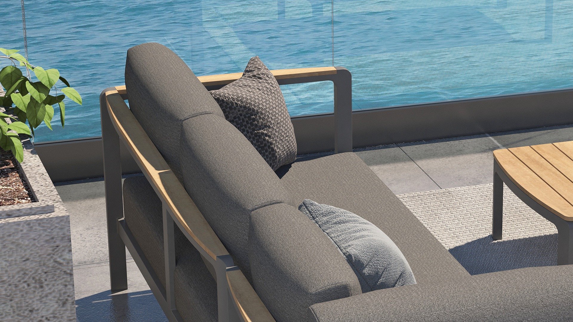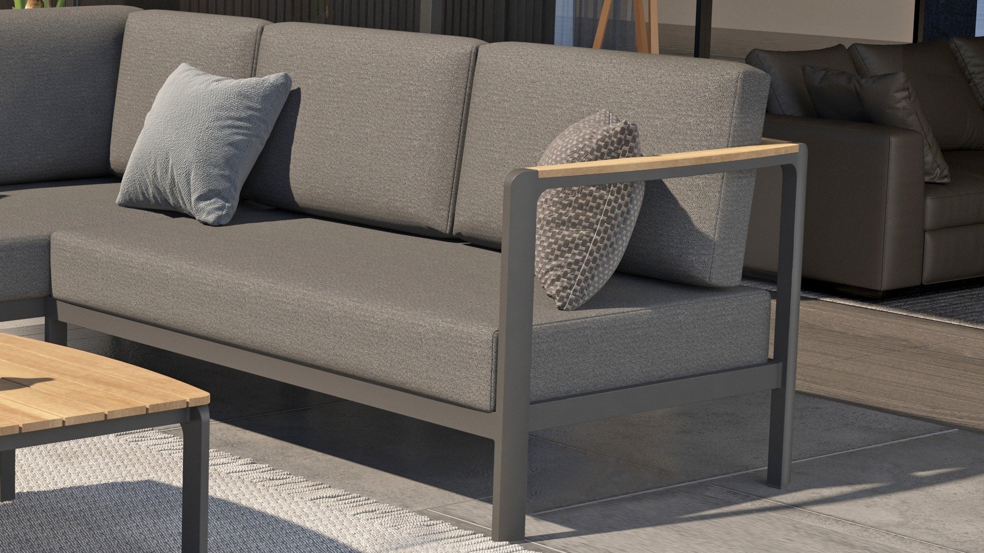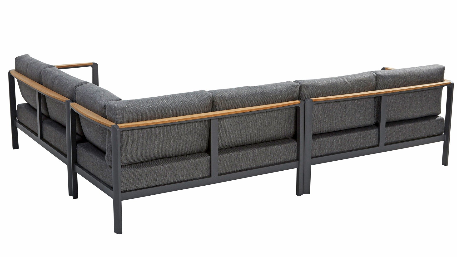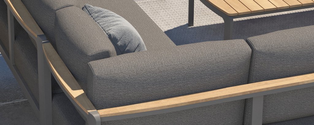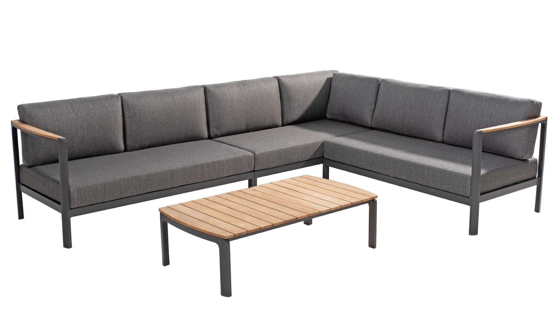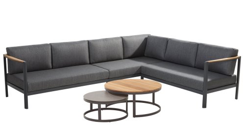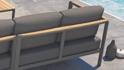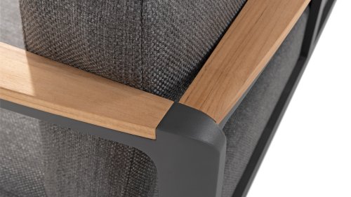 The color combination with teak and aluminum provides a fantastic appearance! Especially due to the flowing design of the teak armrest that continues into the backrest, it is a true eye-catcher and gives the Cortina lounge set the attention it deserves! It is quality, and you can also see this in the aluminum frame, which is at least 2 mm thick and has an extra strong Matt Carbon powder coating. The frame is better protected and stronger than many other garden furniture. That is why this set also comes with a standard 5-year warranty. The modern design, high-quality materials, and exceptionally good seating comfort are the characteristics of the Taste 4 Seasons Outdoor Cortina Lounge Set!