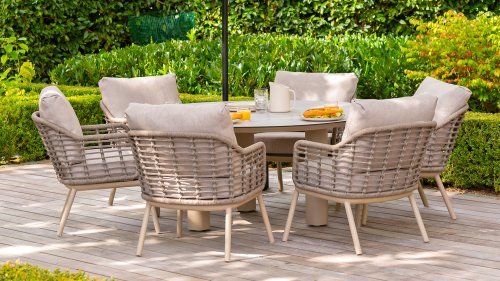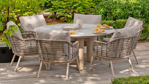 In the Taste by 4 Seasons Outdoor Donato series, there are several options available, as it is available as a dining table in the colors: Taste 4Seasons Donato Table Ø160cm Latte & Taste 4Seasons Donato Table Ø160cm Terre, allowing you to choose the perfect match for your interior. To pass the mayonnaise or milk to the person opposite you, simply add the: Taste 4Seasons Donato Lazy Susan to the whole setup. In addition, there is also a low dining variant available in the colors Latte and Terre, perfect for an informal and relaxed dining experience: Taste 4Seasons Donato Low Dining Table Ø160cm Latte, Taste 4Seasons Donato Low Dining Table Ø160cm Terre. What else?