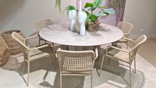 In the Taste by 4 Seasons Outdoor Donato series, there are several options available, as it is available as a dining table in the colors: Taste 4Seasons Donato Table Ø160cm Latte & Taste 4Seasons Donato Table Ø160cm Terre, allowing you to choose the perfect match for your interior. To pass the mayonnaise or milk to the person opposite you, simply add the: Taste 4Seasons Donato Lazy Susan to the whole setup. In addition, there is also a low dining variant available in the colors Latte and Terre, perfect for an informal and relaxed dining experience: Taste 4Seasons Donato Low Dining Table Ø160cm Latte, Taste 4Seasons Donato Low Dining Table Ø160cm Terre. What else?