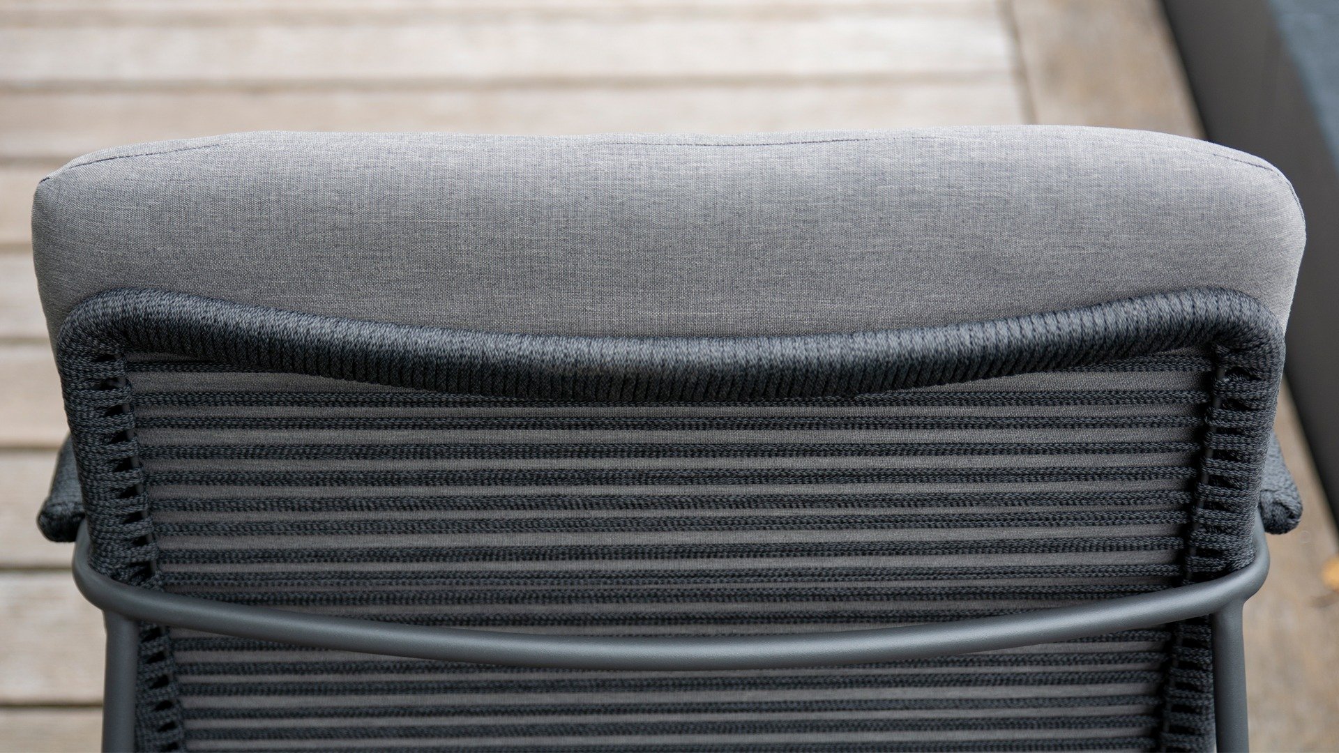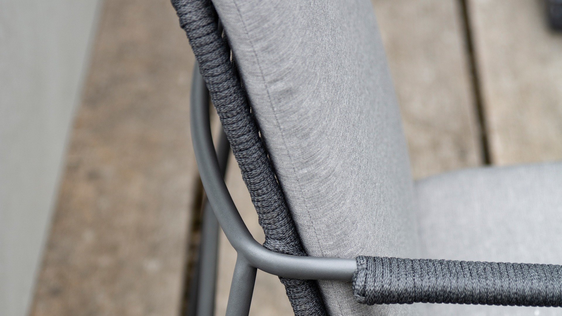 The Taste Elba lounge set has a modern minimalist appearance with a natural touch that is so characteristic of Scandinavian Design. The beauty lies in the details. The frame of the Taste Elba Lounge set connects seamlessly and fluidly, and where the flowing frame comes together, it is finished with tightly woven anthracite Rope. The back and seat are woven with this strong rope, providing a sturdy yet comfortable seat. The frame creates a playful and minimalist interplay of flowing lines that come together and then separate, a feast for the eyes! Also, check out the dining variant of the Elba here: Taste by 4 Seasons Outdoor Elba Garden Set.