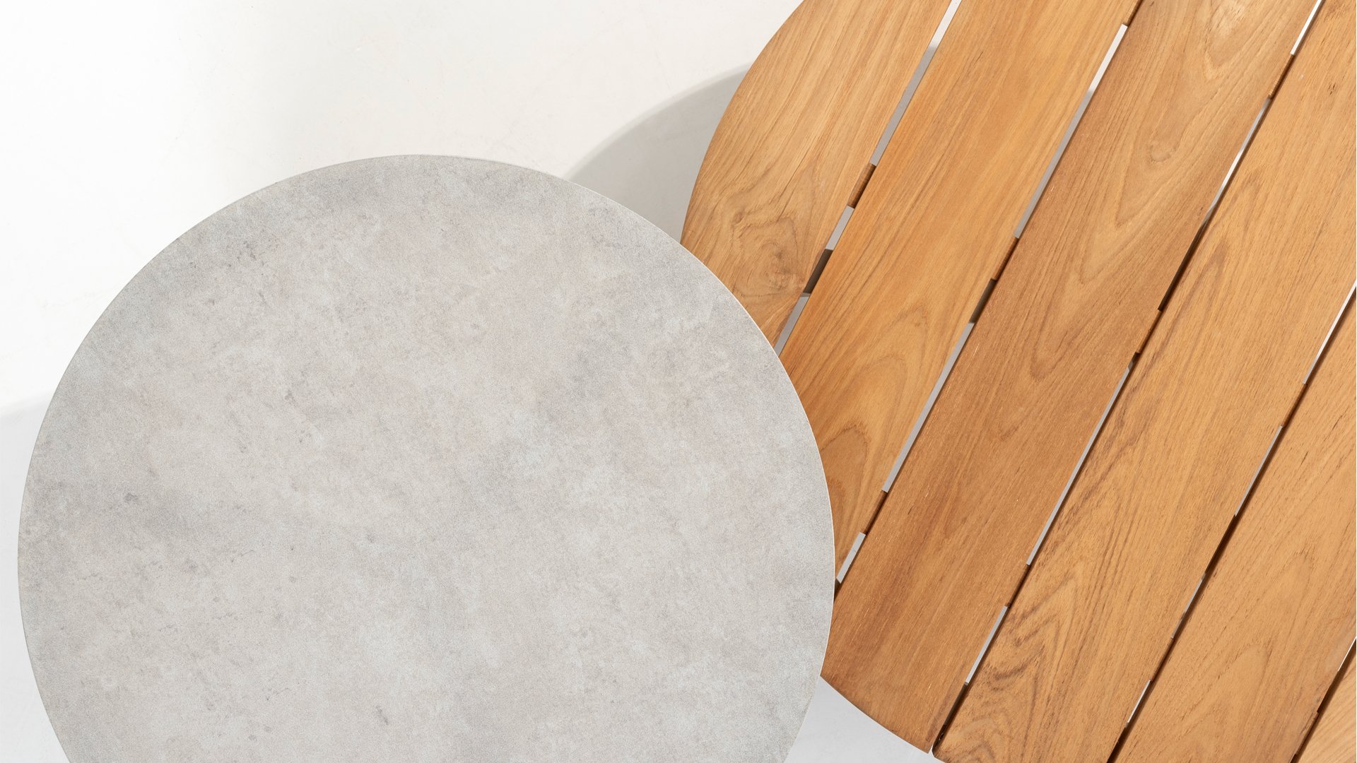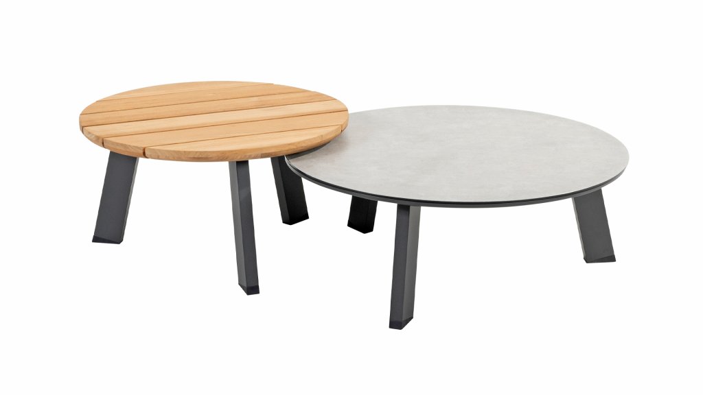 It takes 2 to tango Why choose 1 coffee table when you can have 2? At the Taste 4Seasons Emma coffee table set, we always give you one table with a teak top én one with a ceramic glass top. Choose the color that matches your lounge set: latte or anthracite.