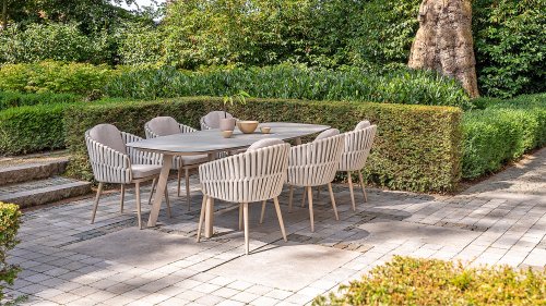 Looking for a low-maintenance table with a modern look? Then consider the Taste by 4 Seasons Outdoor Manolo 240cm, available in anthracite, latte, and terre. The shape of the tabletop and the position of the aluminum legs make this table incredibly practical. This shape creates ample space on all sides. The table's distinctive design features a Danish oval tabletop made of glass-printed ceramic, allowing it to remain outdoors year-round. No room for a 240cm table? The Taste 4 Seasons Manolo 75cm or 180cm are alternatives; both sizes are available in latte, anthracite, and terre.